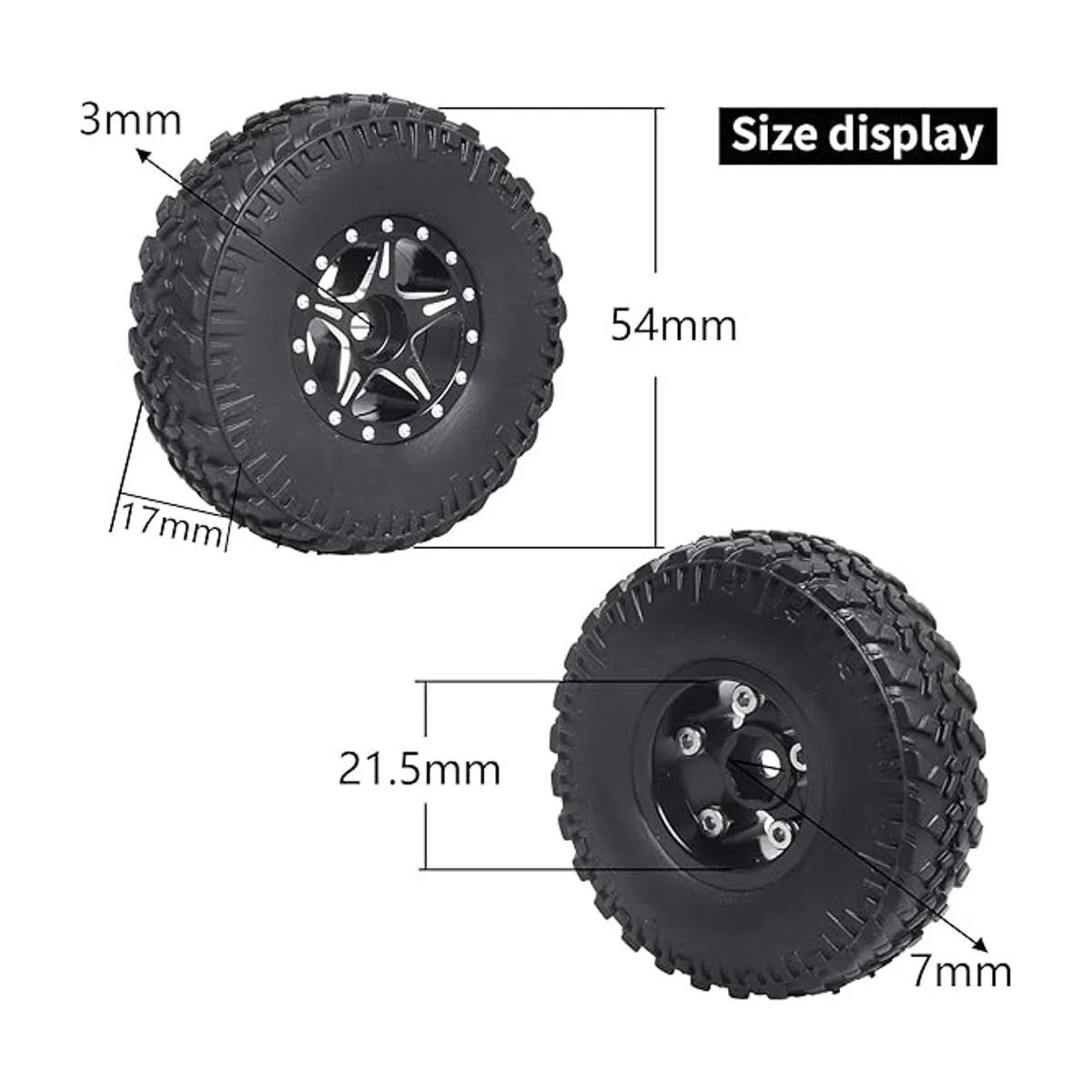 Diámetro exterior de los neumáticos: 2.126 in, ancho: 0.669 in, hexagonal de la rueda: 0.276 in, agujero del eje: 0.118 in