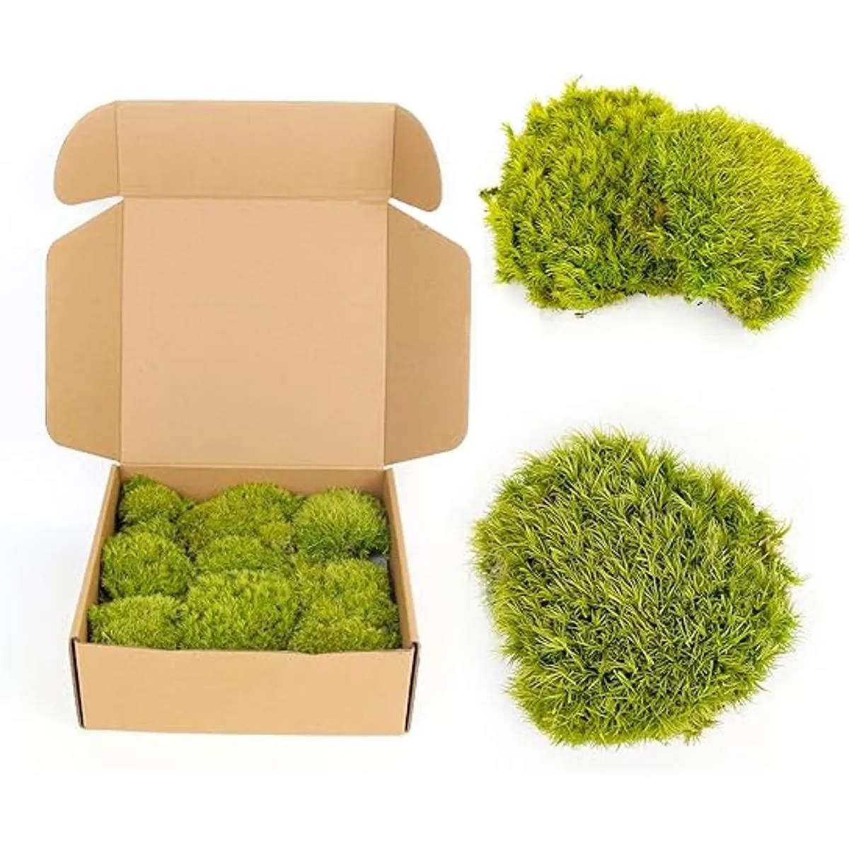 Moss Crafts Arrangement Our moss preserves the original fresh green, through handpicked, different sizes and shapes in a box, suitable for moss art creation.