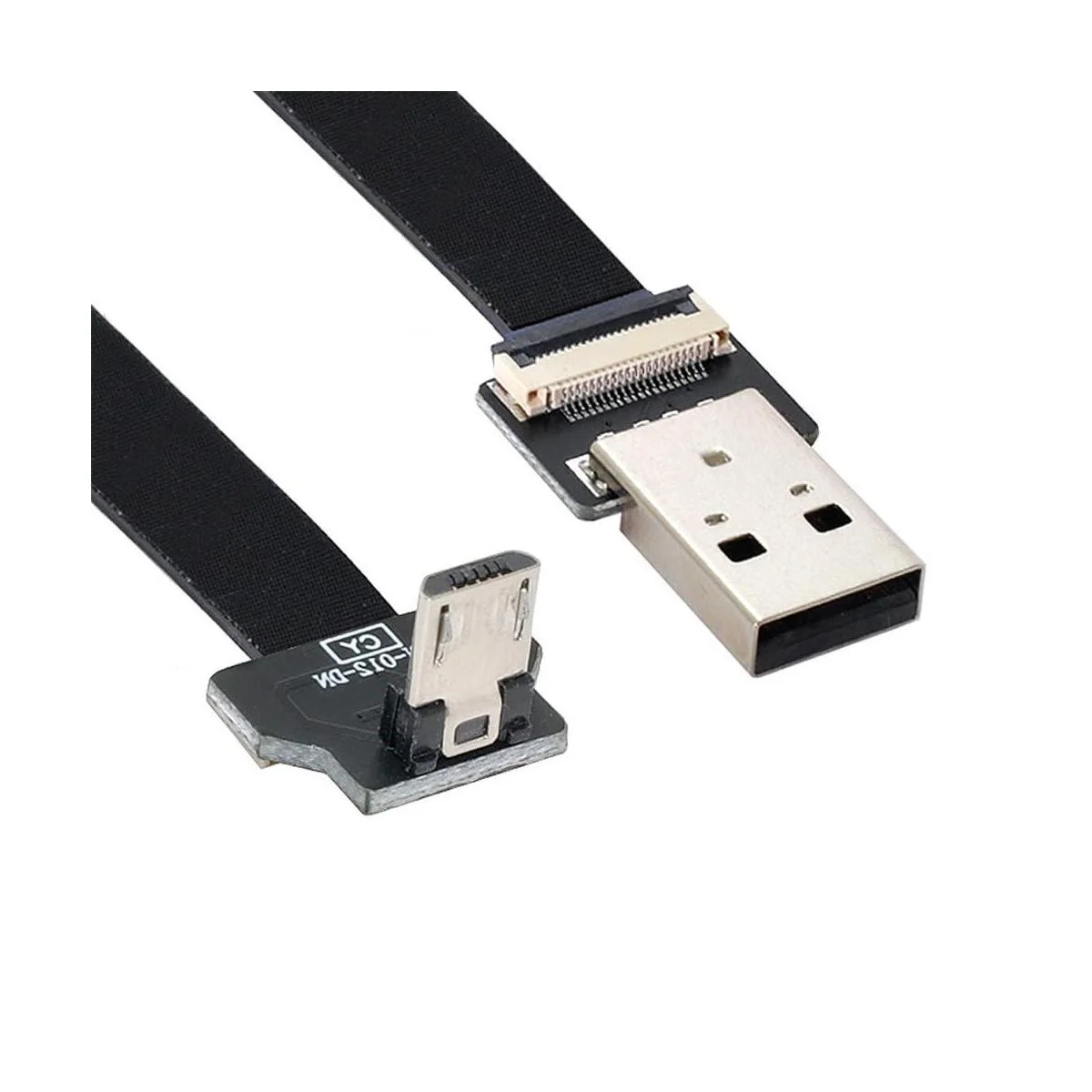 Cable FPC plano plano de datos FPC tipo A macho a Micro USB de 5 pines macho en ángulo hacia abajo para FPV, disco y teléfono Longitud del cable: 19.7 in