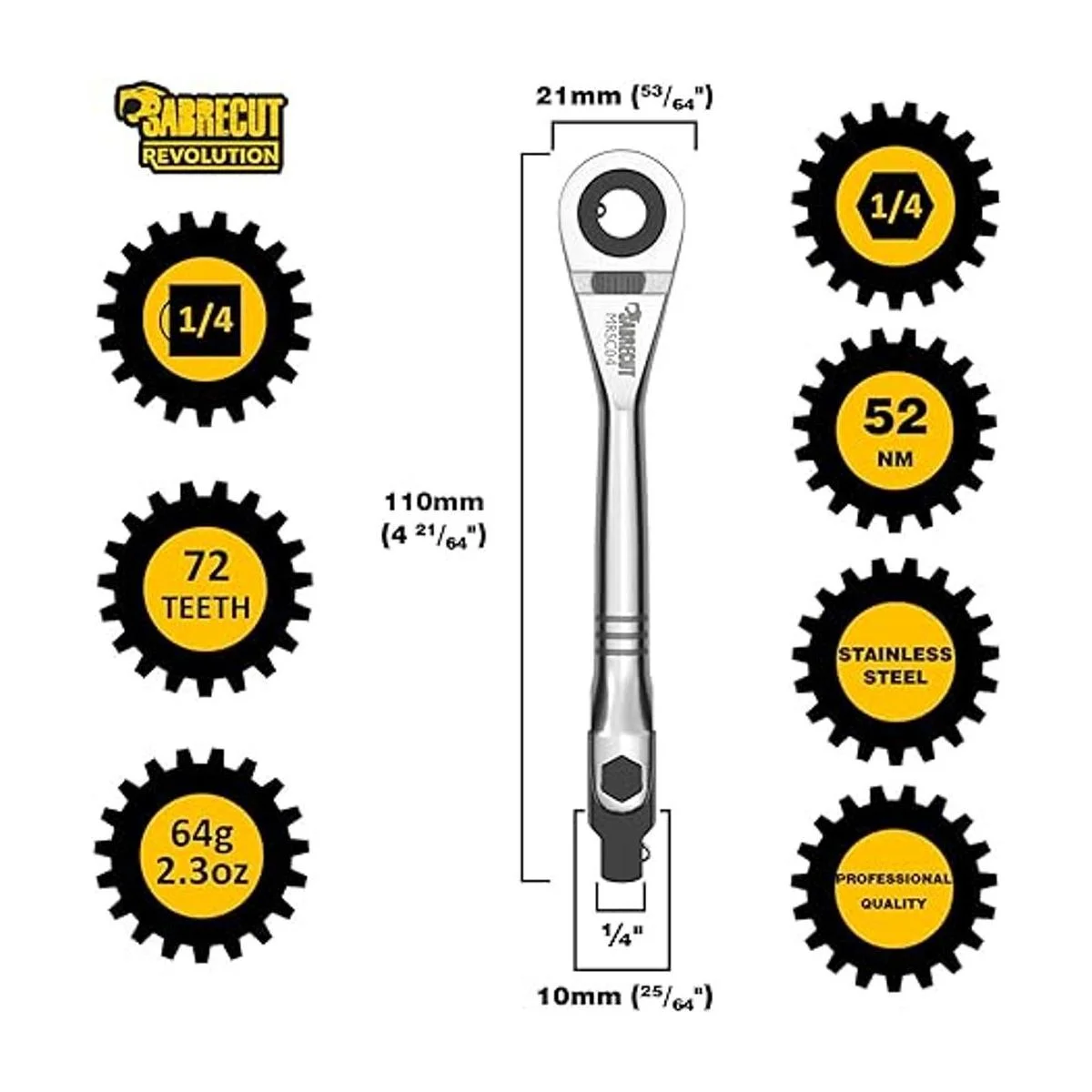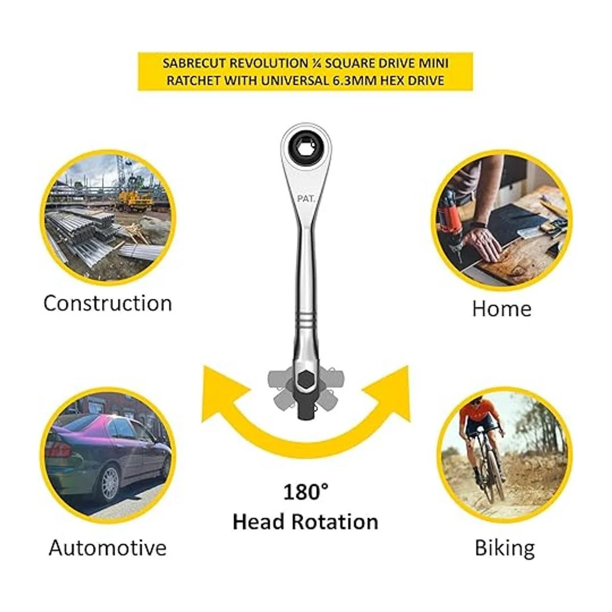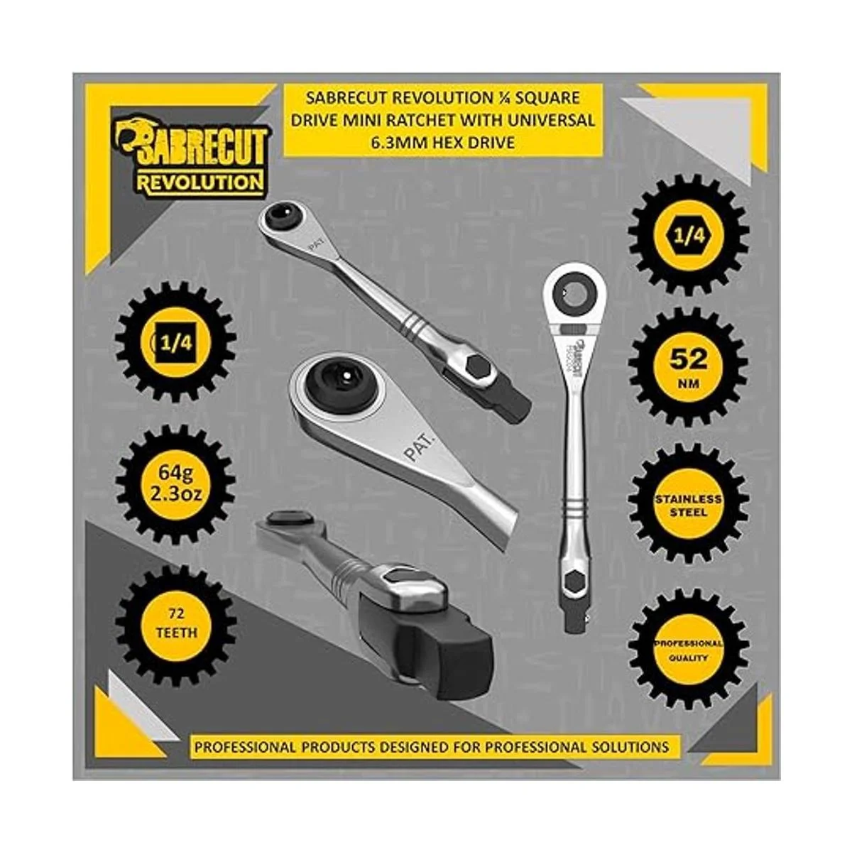 1 pieza SabreCut Revolution 1/4 6.3 mm hexagonal y ajustable 1/4 cuadrado micro trinquete