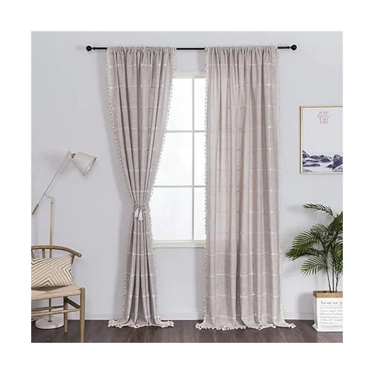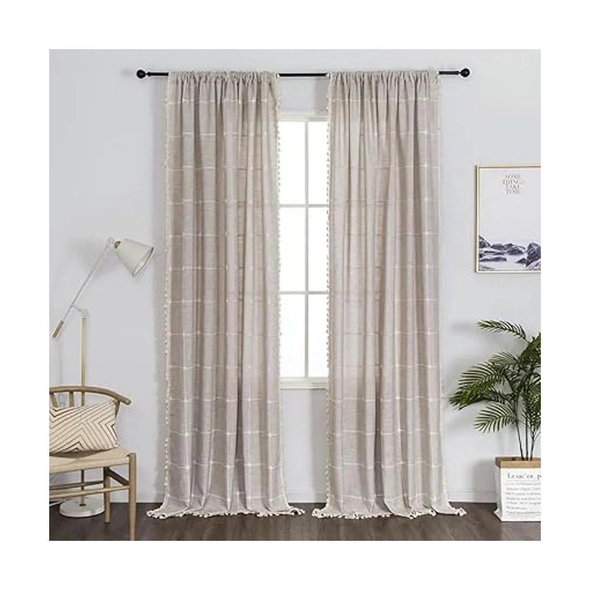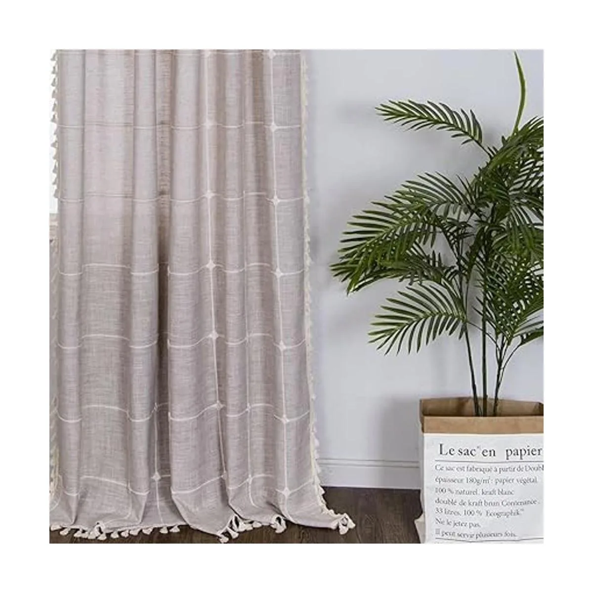 1 par de cortinas bohemias de lino y algodón con borla, cortinas de granja para dormitorio, sala de estar beige, 2 x 54 x 96 pulgadas