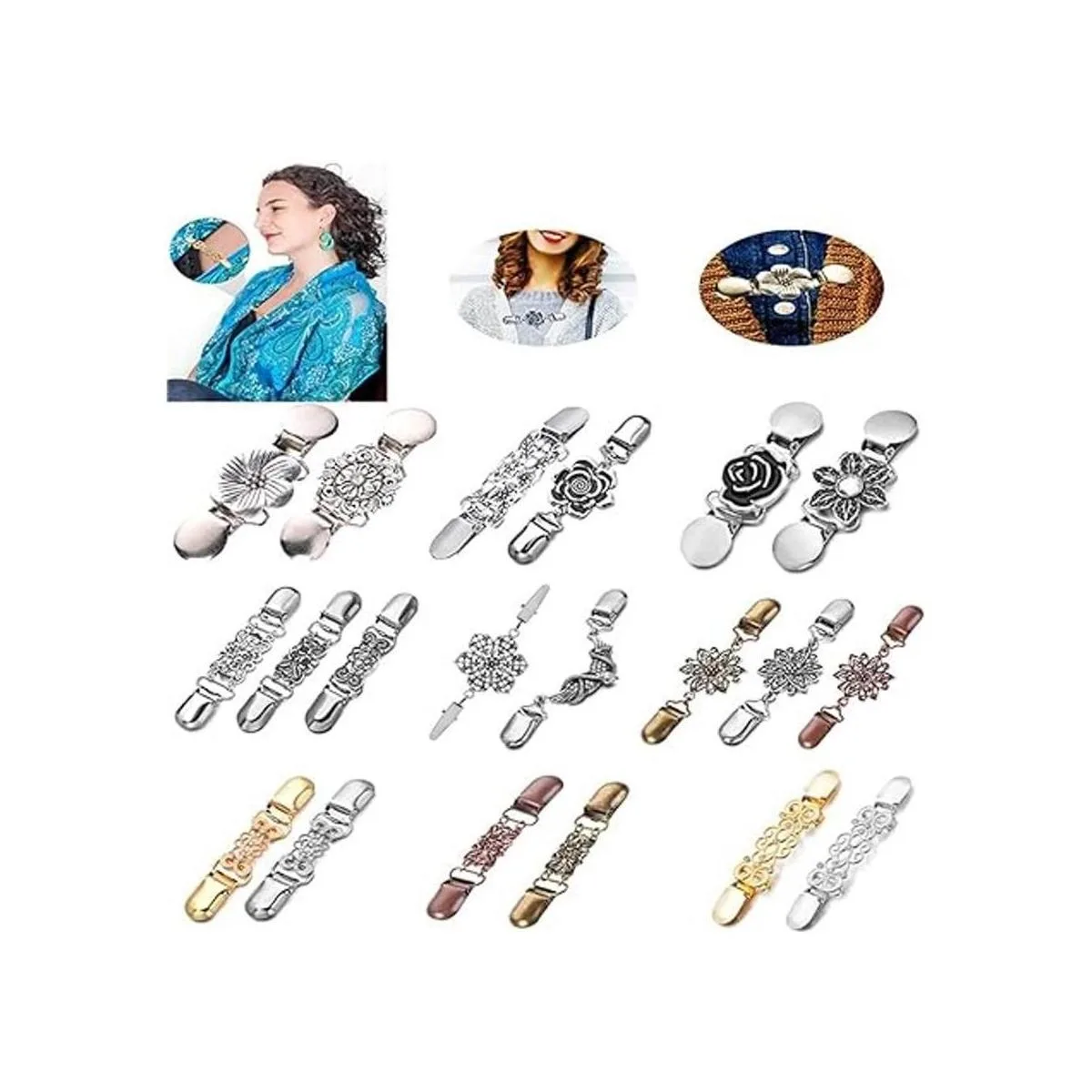 1 PC Vintage Metal Patrón Ropa Clip Apriete Seda Bufanda Hebilla Duckbill Clip Accesorios Mujer 17 Jasmine