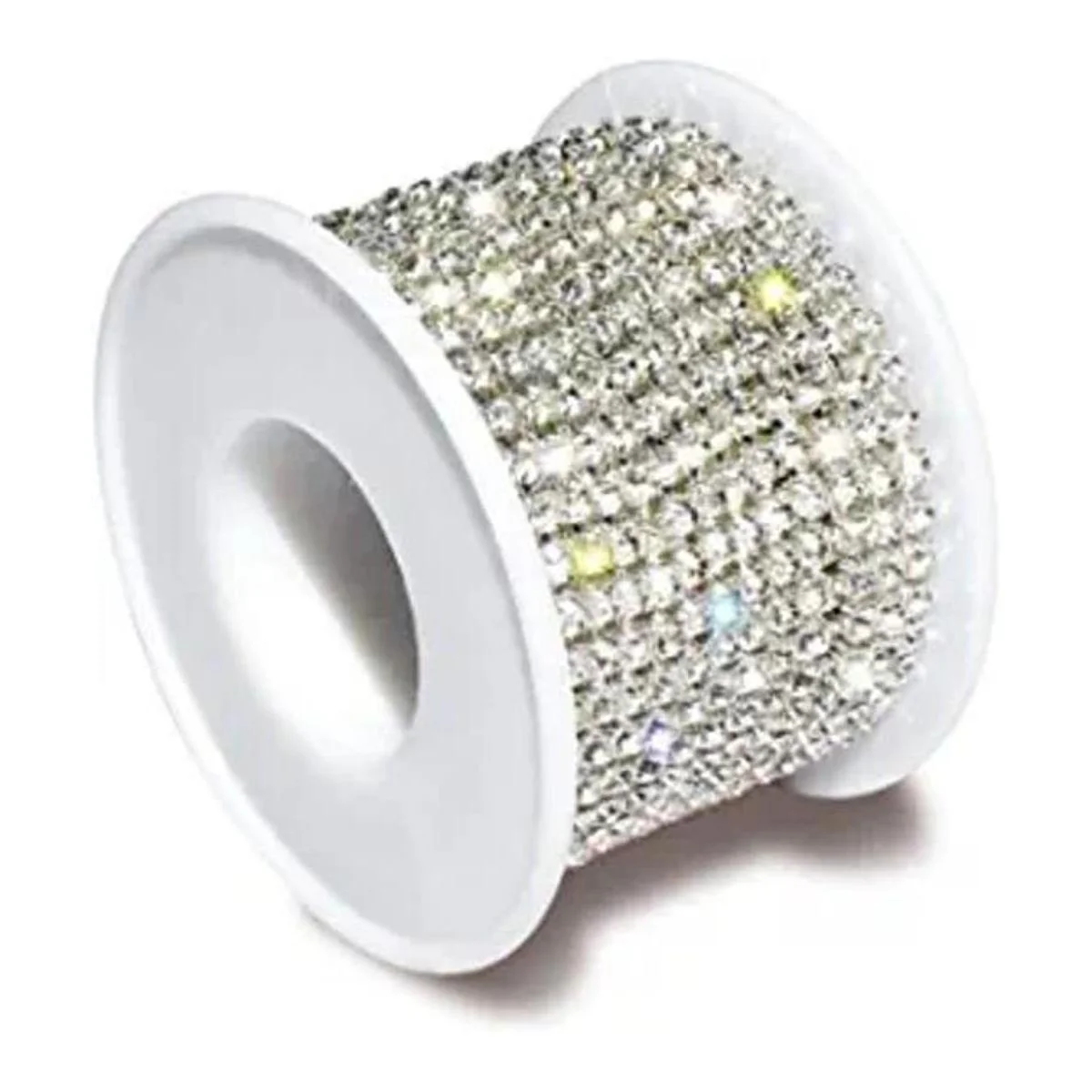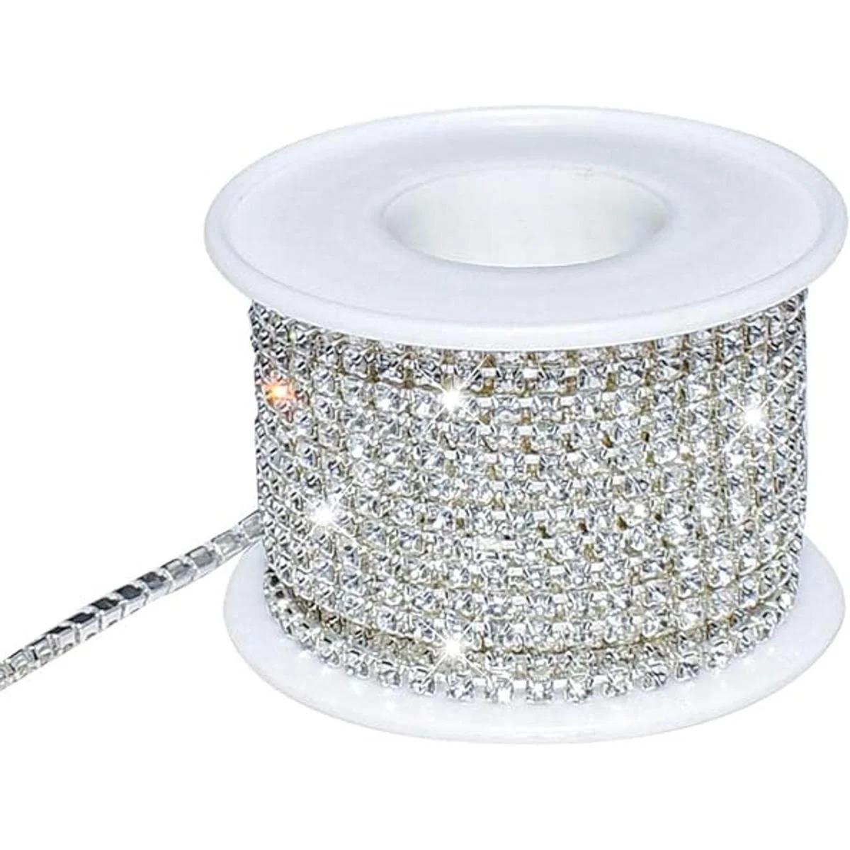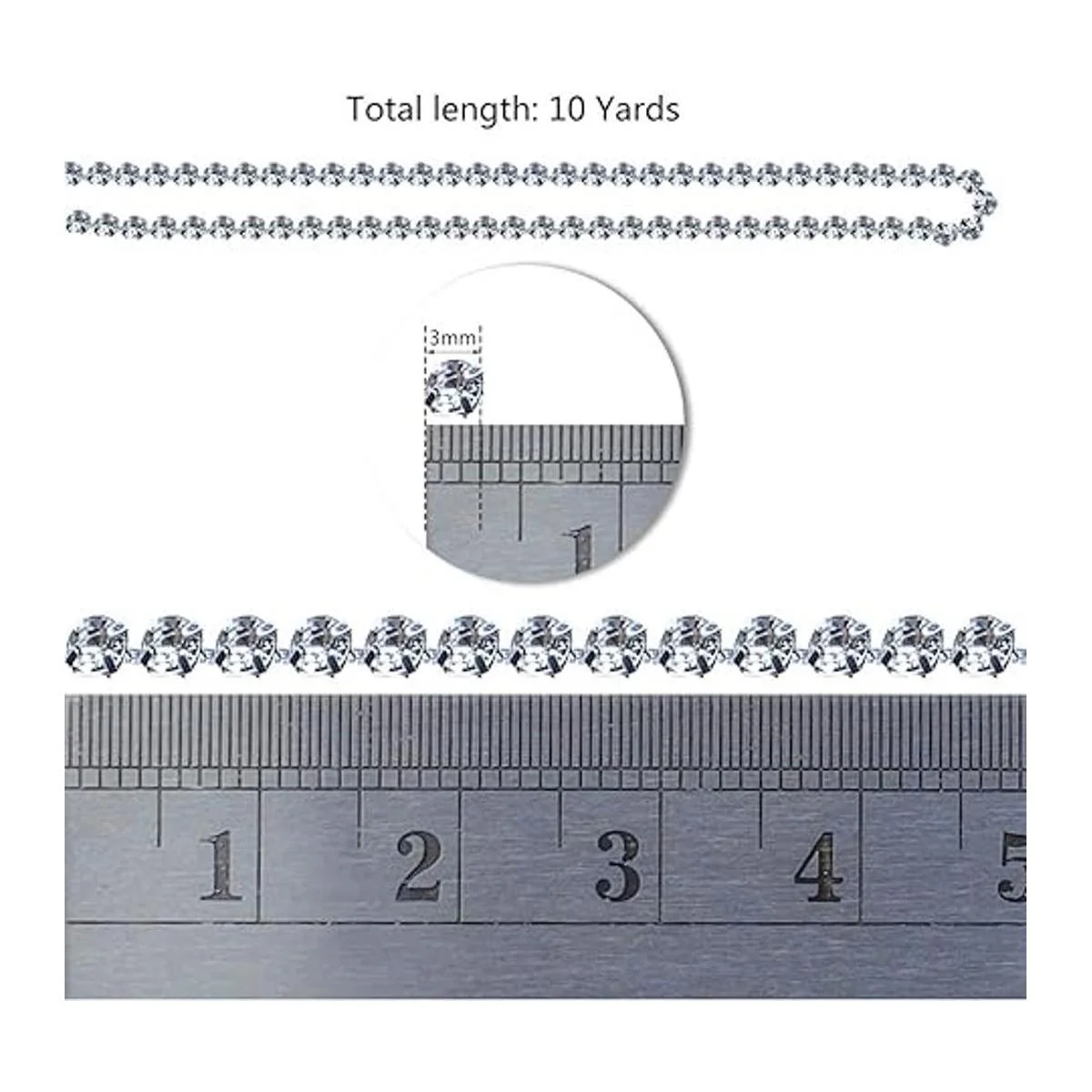 1 rollo de 10 yardas de diamantes de imitación de cristal de 0.118 pulgadas para costura, manualidades, decoración, joyería, cadena de garra de cristal plateado, cadena de diamantes de imitación, cadena de diamantes de imitación, regalo de Navidad SS12