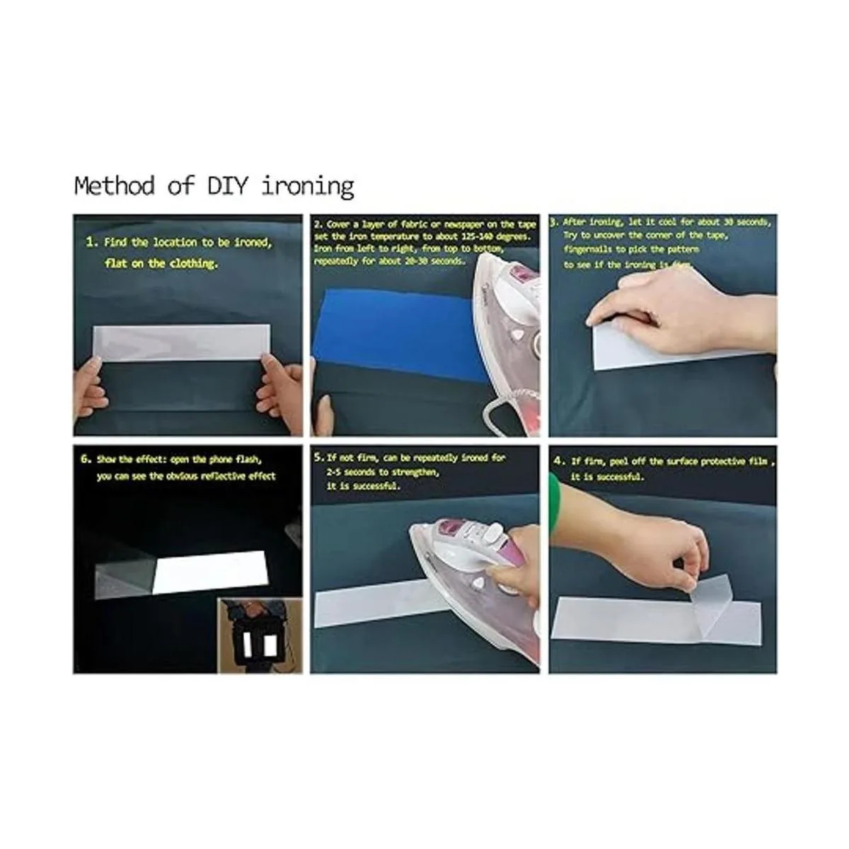 1 seguridad transferencia de calor película de vinilo DIY hierro en ropa de tela cinta de plata reflectante M31