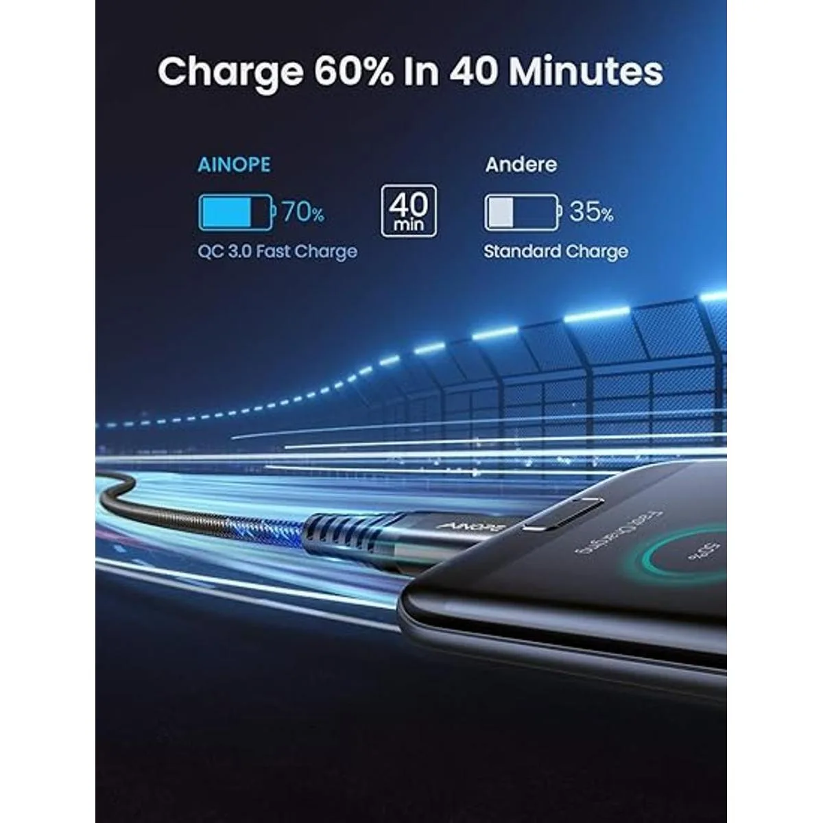 Carga y sincronización de alta velocidad: nuestro producto tiene una velocidad de transferencia de hasta 480 Mbps, carga de 2,4 A, transferencia de datos y carga de alta velocidad 2 en 1. El cable es compatible con carga rápida de velocidad QC3.0.