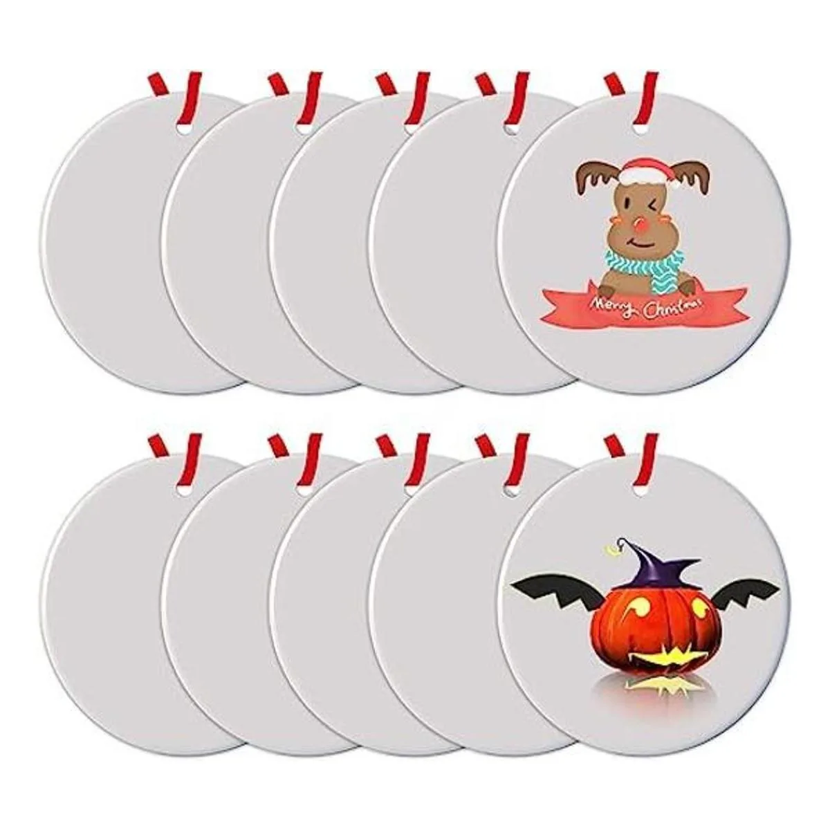 10 adornos de sublimación en blanco, redondo, blanco, adorno de cerámica para sublimación, adorno de Navidad personalizado 2022, adornos de porcelana en blanco para transferencia de calor, regalo de manualidades
