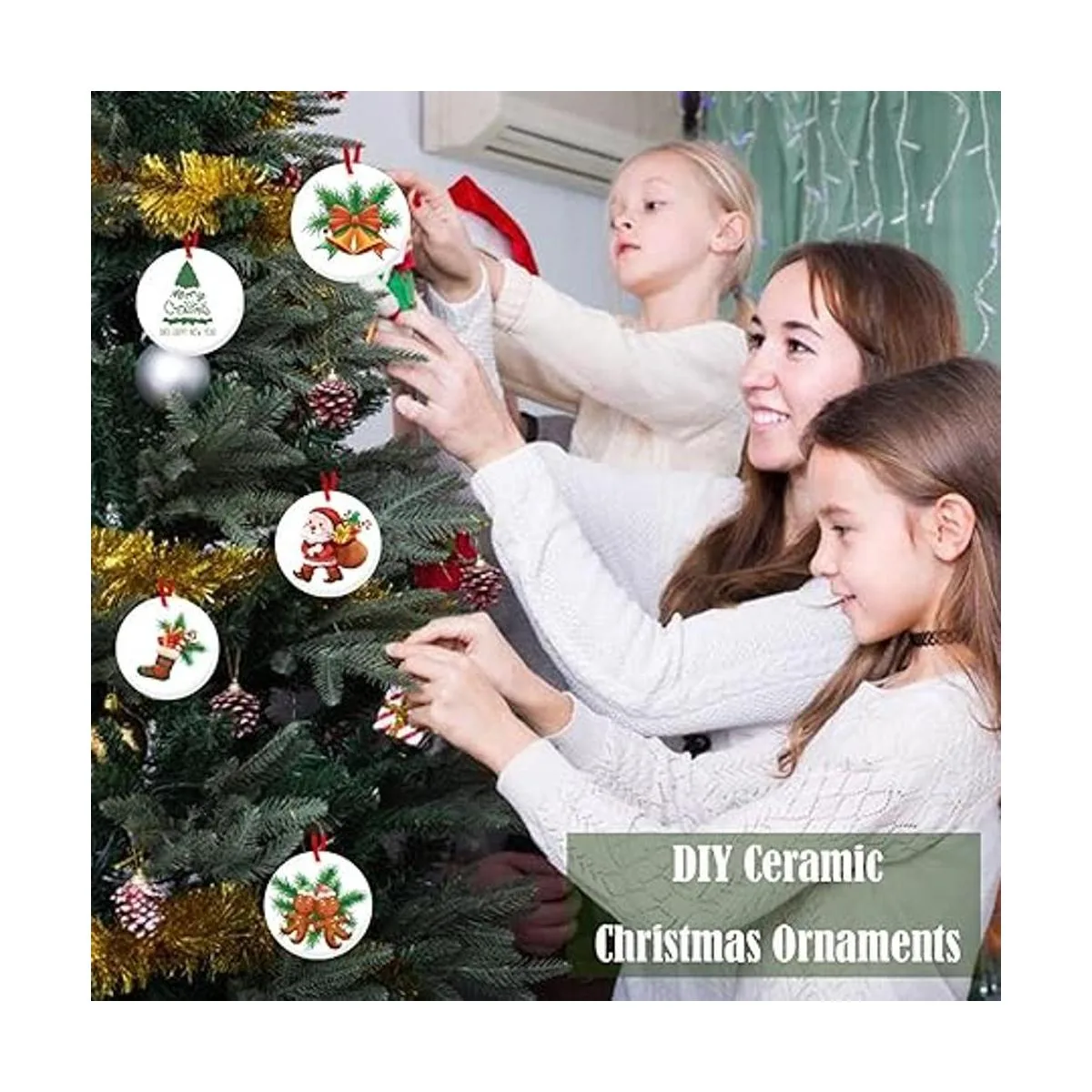 Adornos de Navidad de bricolaje: la decoración de cerámica de sublimación en blanco es fácil de aplicar con cualquier marca en la superficie, puedes sublimarla con la foto o texto de tu familia o amigos, como: Merry Christmas, Our First Christmas, cualquier mensaje de este año hito que quieras expresar, y colgarlos en el árbol de Navidad, crea un adorno de Navidad único y deja un recuerdo inolvidable