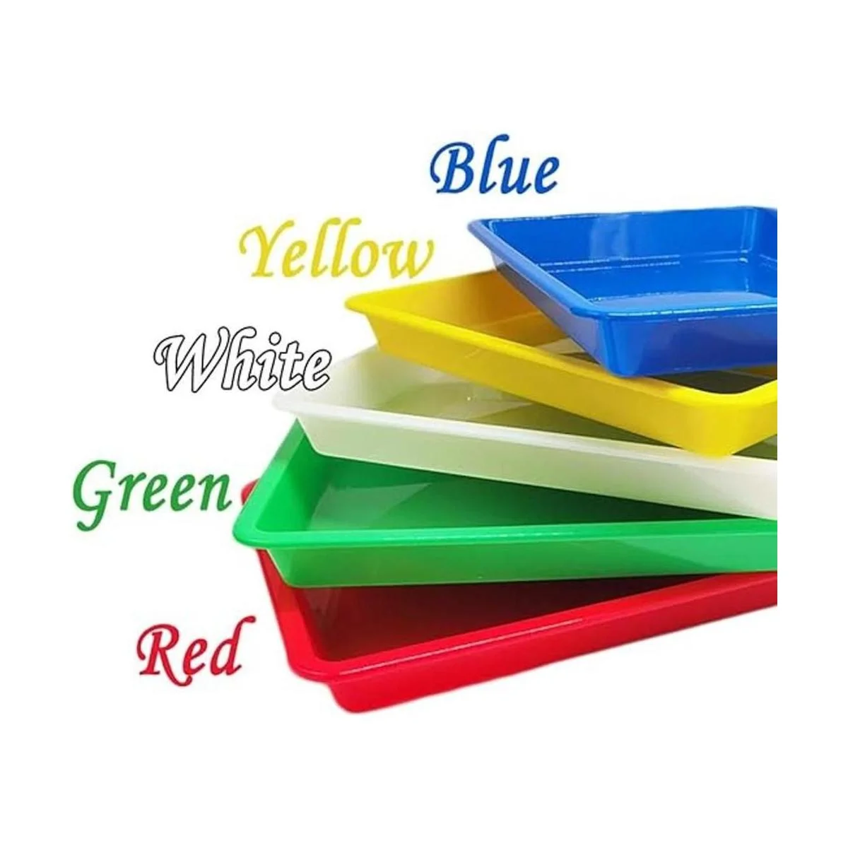 Bandeja colorida: 5 colores diferentes en verde, azul, amarillo, blanco, rojo. El tamaño es de 11 x 8.3 x 1.2 pulgadas largo x ancho x profundidad.
