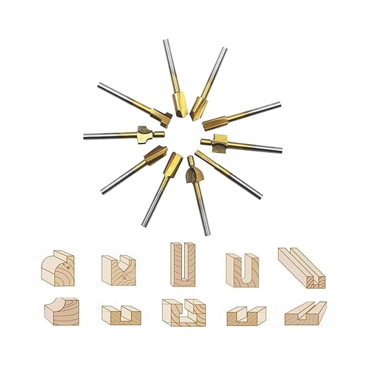 10 brocas de grabado de carburo HSS y 10 brocas de enrutador con vástago de 18 pulgadas 0.118 in herramientas rotativas para manualidades, tallado, esculpimiento, grabado, perforación.