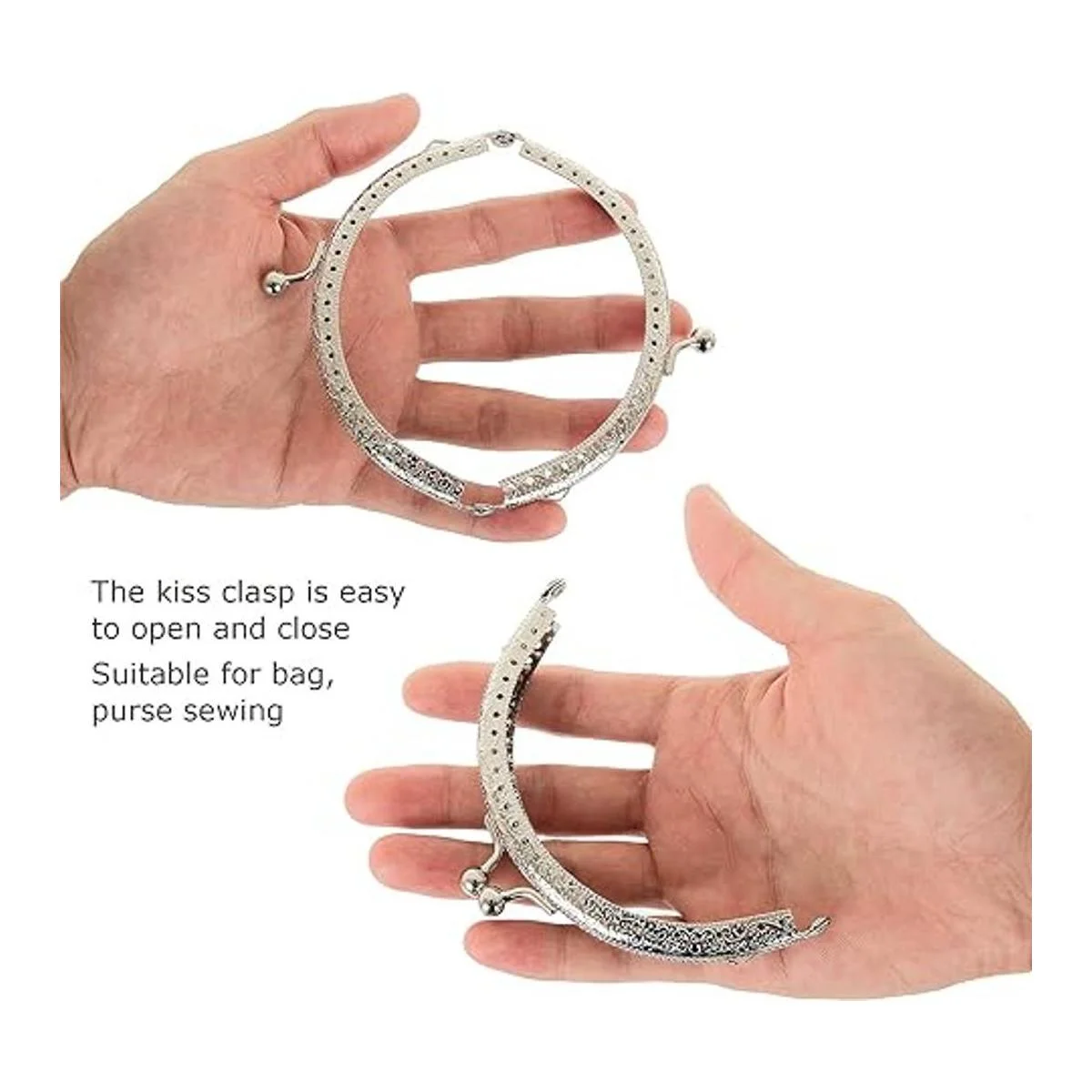 Herramienta perfecta para bolsas: si quieres hacer tus propias bolsas especiales o quieres hacer algunos productos de bricolaje para tus amigos, nuestro cierre de monedero es tu mejor opción con un diseño genial y fácil de usar; la apertura plana extensible y el pequeño agujero de costura es fácil de coser, fija la tela al marco