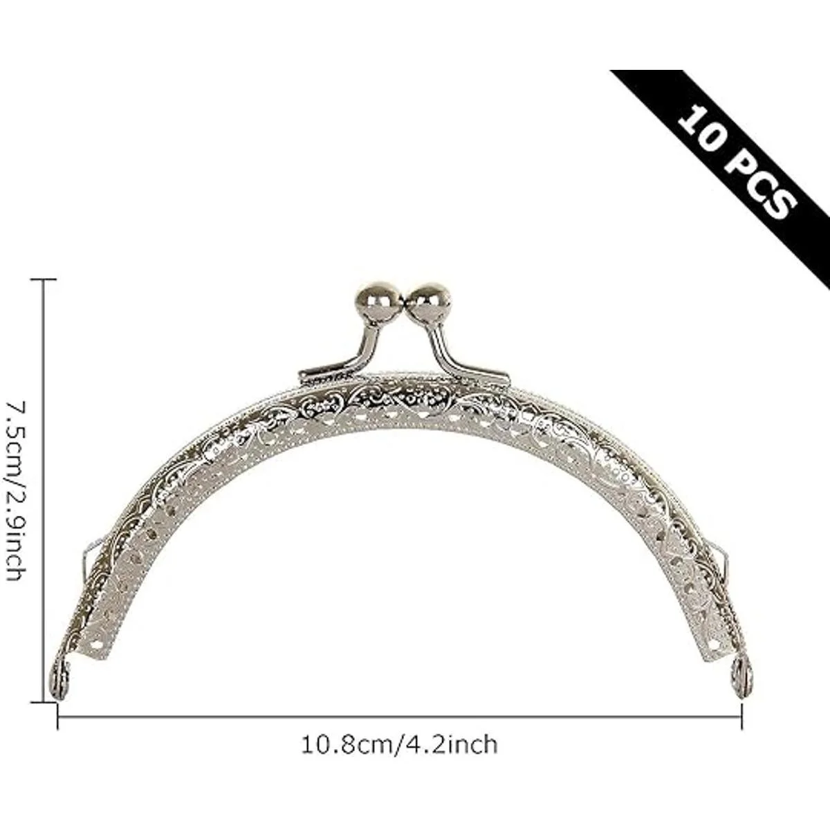 10 cierres de cierre de beso de bolsa de 4 pulgadas, marco retro de metal para monedas, cierre de bolsa de moneda, marco de monedero, cierre de beso, para manualidades, costura, asa de bolsa de manualidades plateado