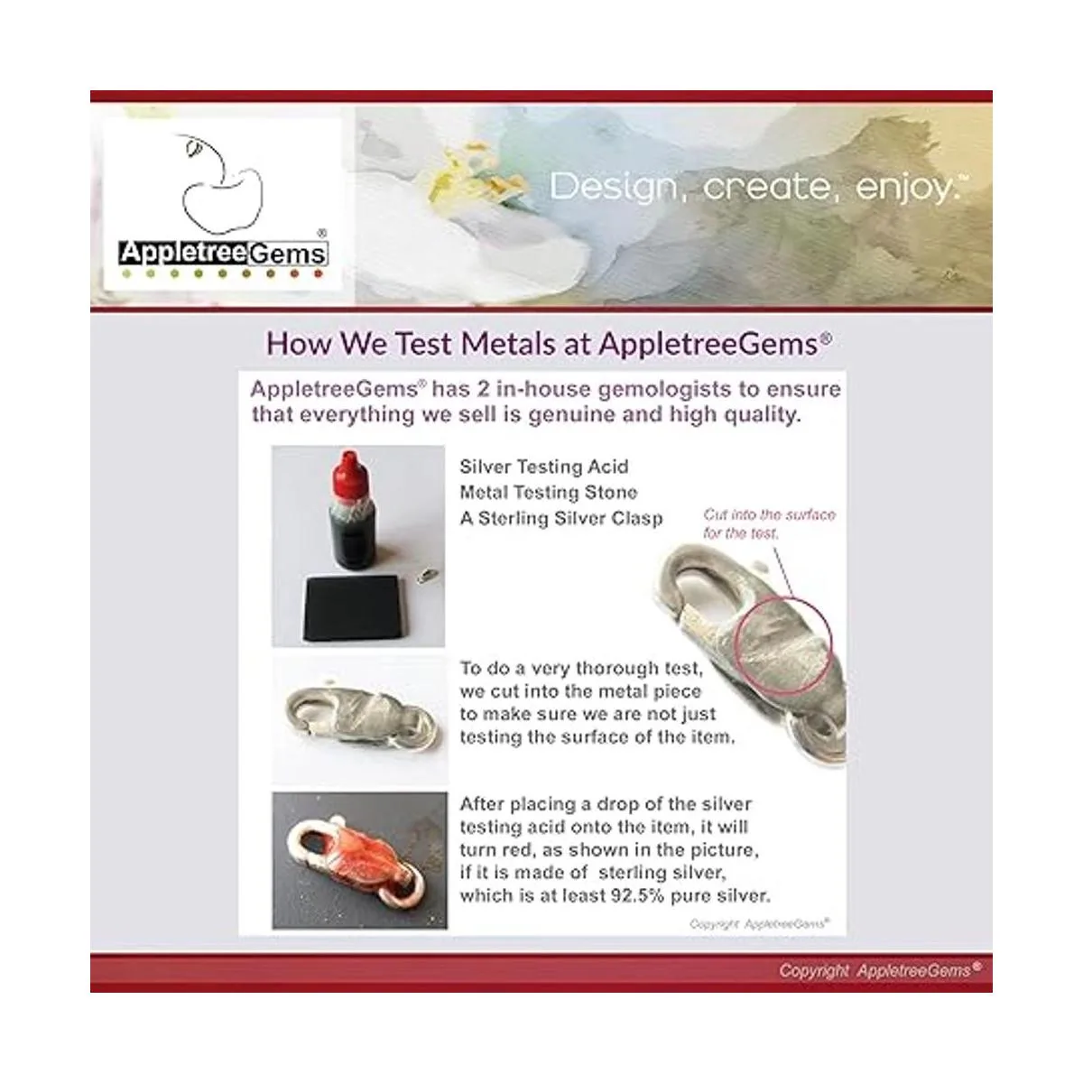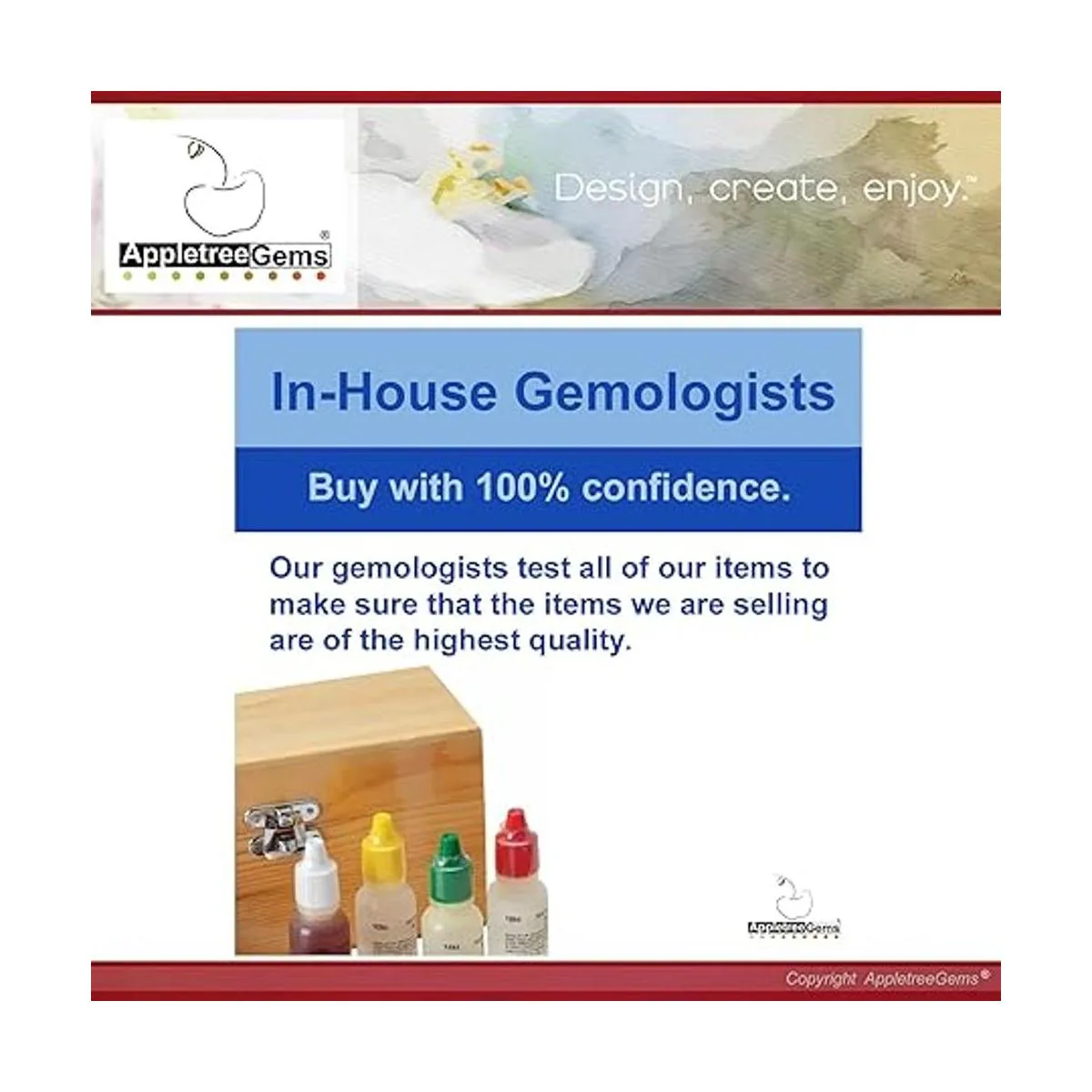 Todos los suministros de fabricación de joyas de AppletreeGems son probados por nuestro gemólogo interno para garantizar que todo lo que vendemos sea correcto y de alta calidad.