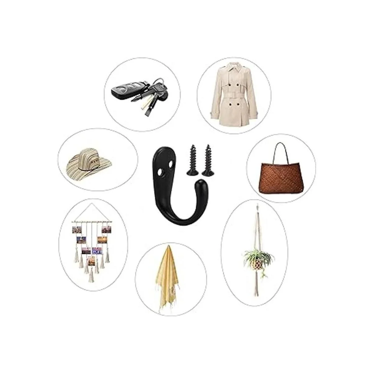 Material: ganchos hechos de aleación de zinc y el tornillo está hecho de hierro, material duro y duradero, no es fácil de romper y puede resistir el óxido y la erosión.