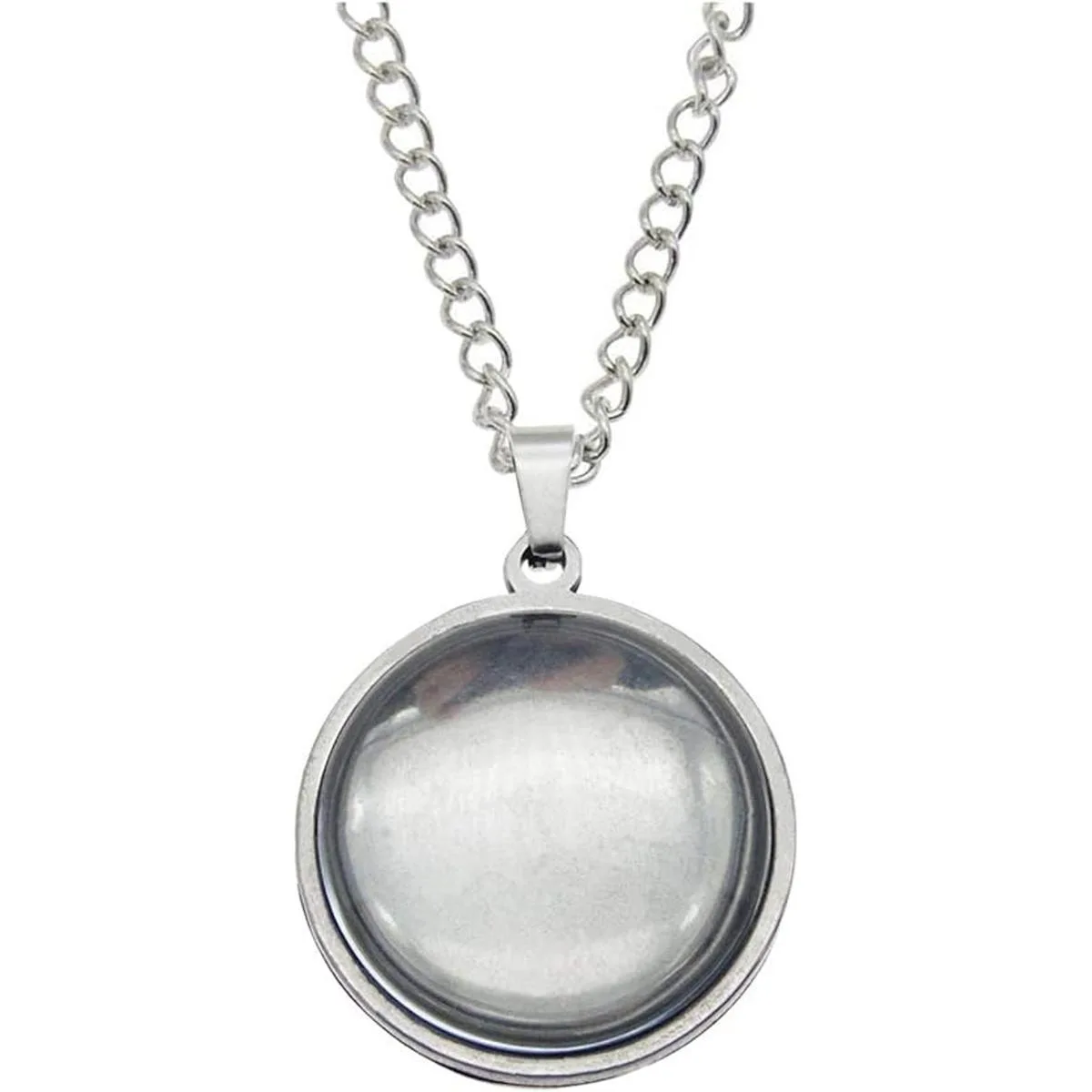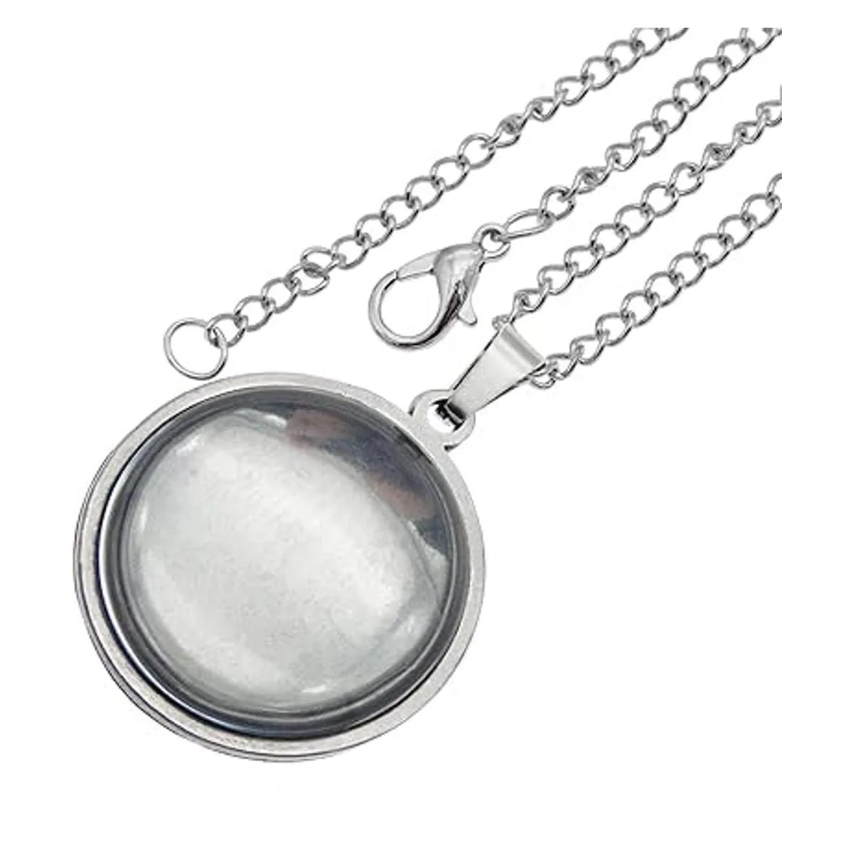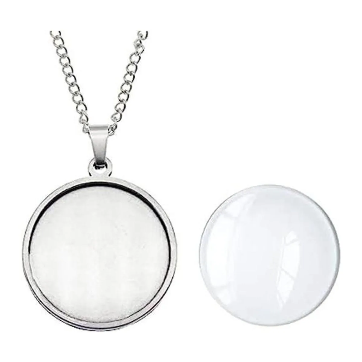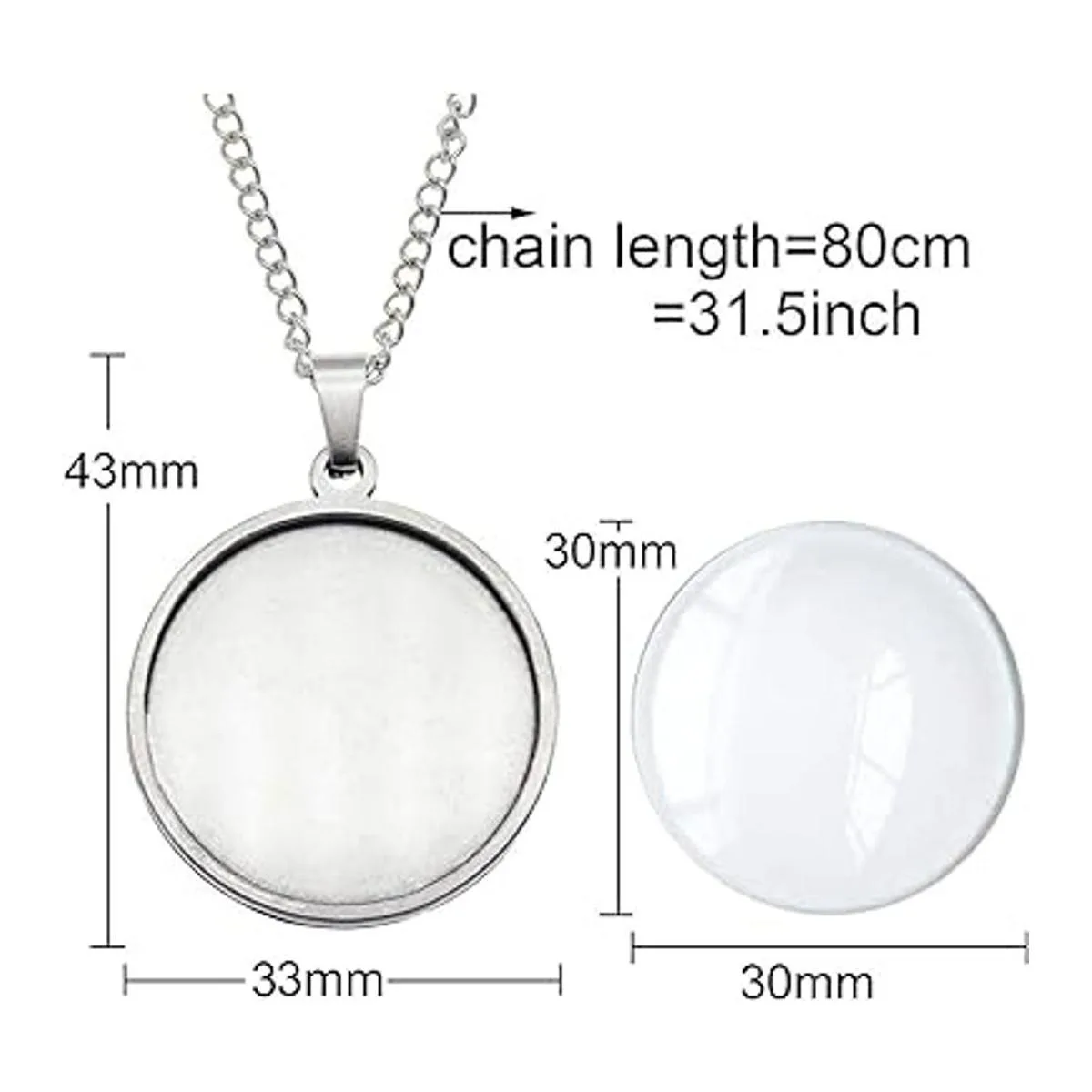 10 juegos de colgante de bandeja de bisel de acero inoxidable con cabujones de vidrio y cadena para resina foto de joyería, collar redondo de 1.181 x 1.181 in