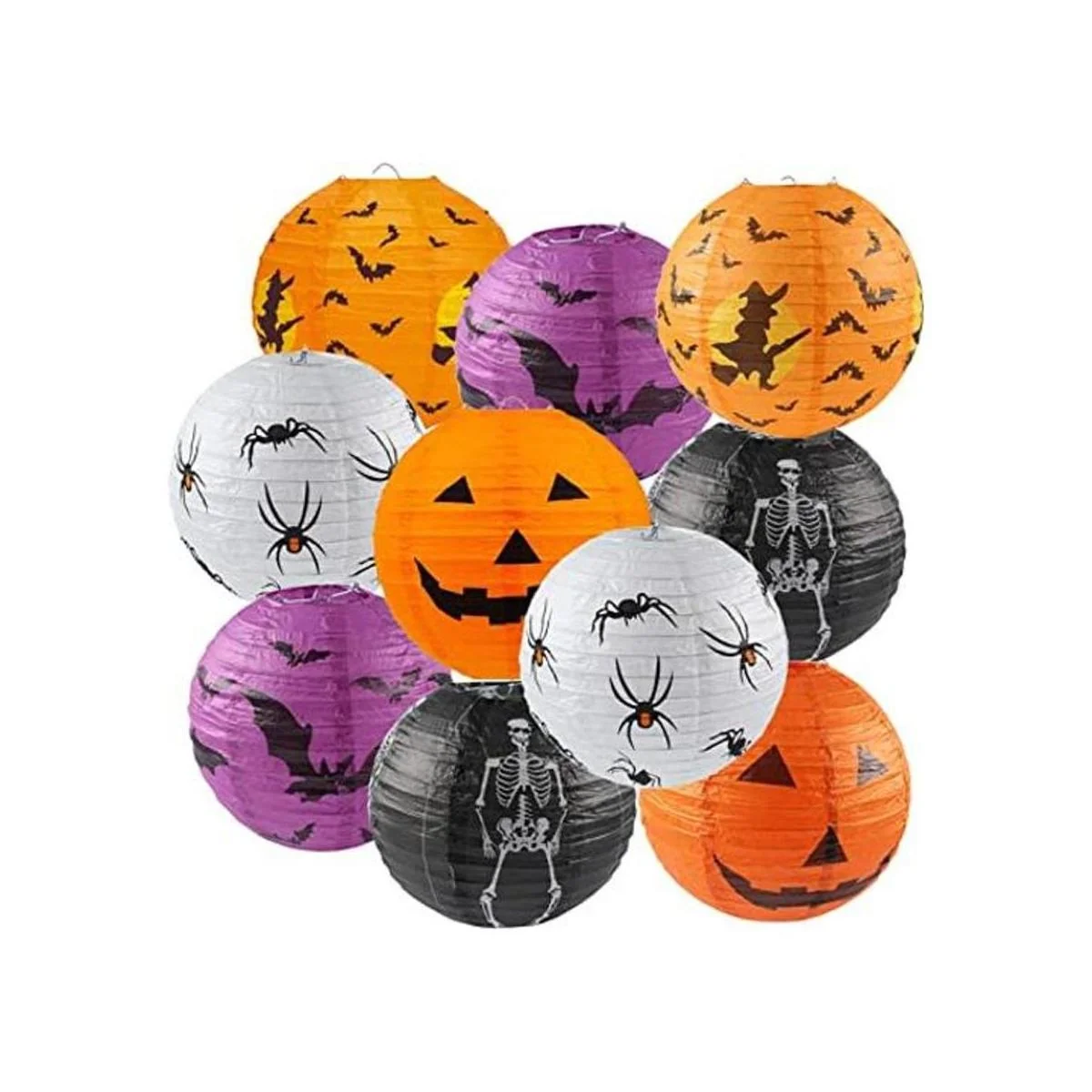 10 linternas de papel de Halloween, colgante JackOLantern Spider Skeleton calabaza para decoración de fiesta de Halloween, decoración espeluznante para interiores y exteriores, 10 pulgadas