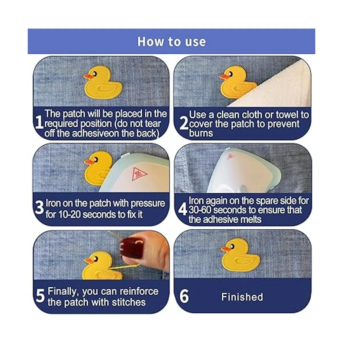 Instrucciones de uso: los bonitos parches de pato se pueden planchar o coser ver el diagrama paso a paso en la imagen. Cuando utilices una plancha para reparar o hacer piezas de tela, necesitas mantener las piezas de tela y la plancha secas y controlar la temperatura al planchar las piezas de tela. Después del planchado, puedes utilizar una aguja e hilo para coser y reforzar el parche