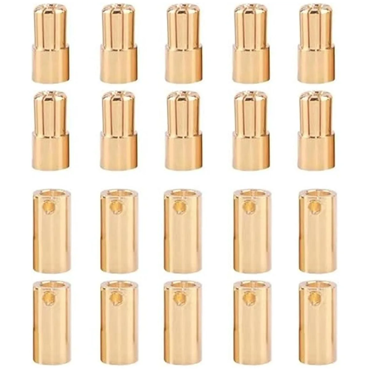 10 pares de conectores de bala de plátano dorado de 0.256 in macho y hembra para batería RC ESC cable de motor