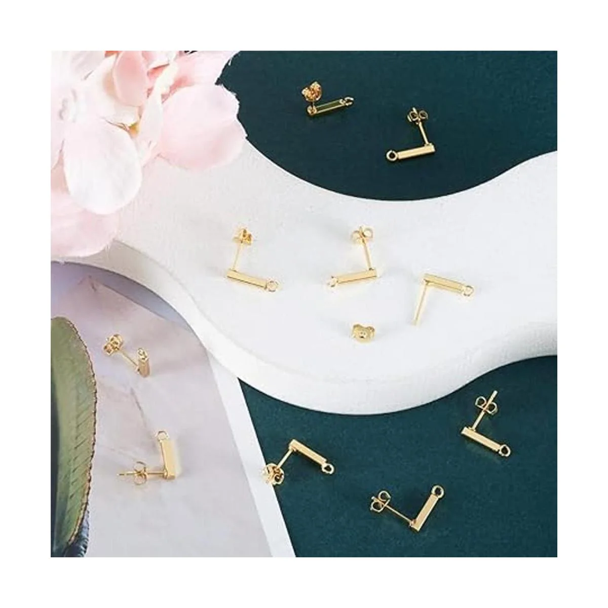 10 pares de pendientes de aro de oro de 18 quilates de Fashewelry, con tira rectangular para pendientes de oreja con cierre de seguridad para mujeres y niñas cuelgan pendientes para hacer joyas