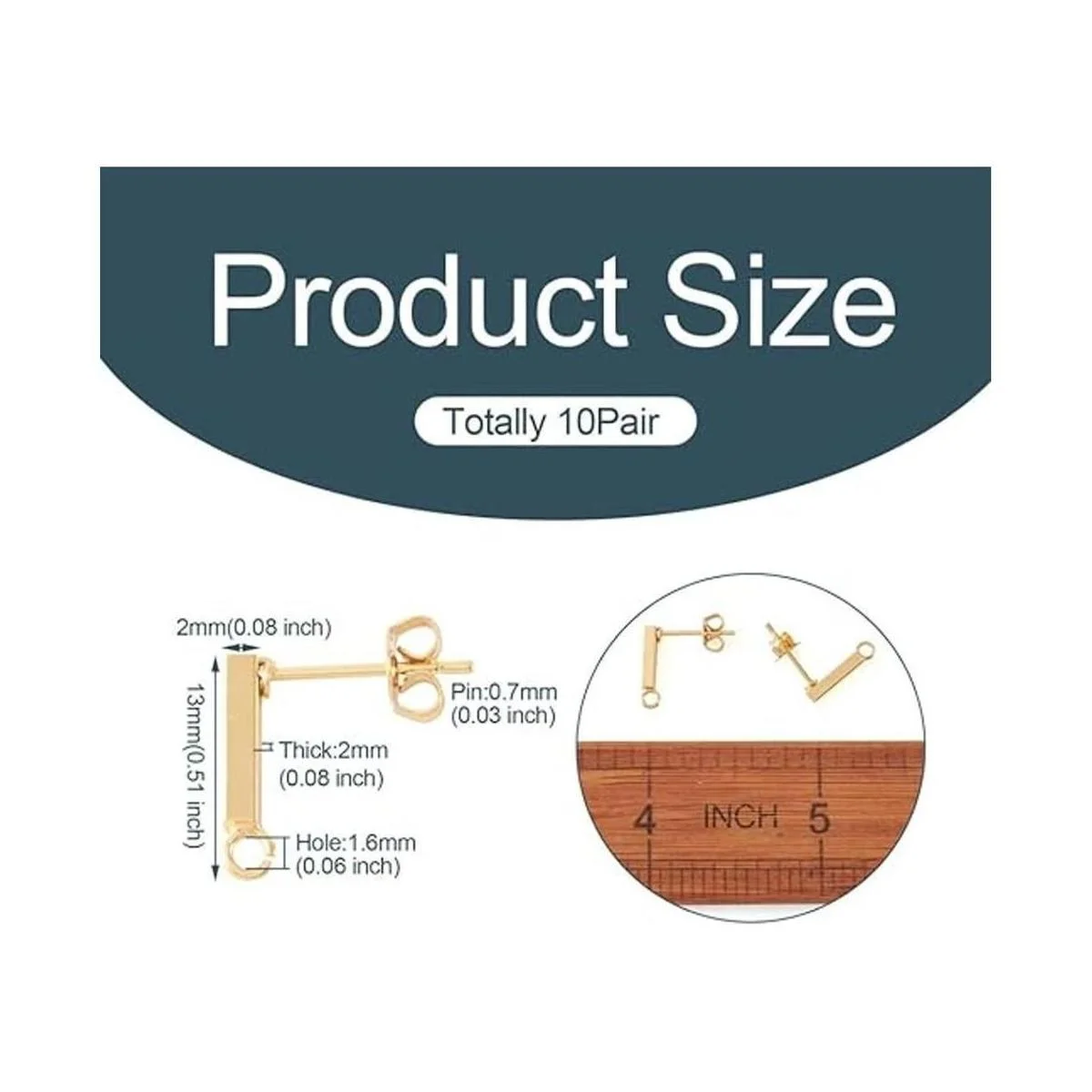 El paquete incluye: total de 10 pendientes alrededor de 0.079 in de ancho, 0.512 in de largo, 0.079 in de grosor, 0.028 in de pines, 0.063 in de agujero y 10 piezas de tuercas a juego.