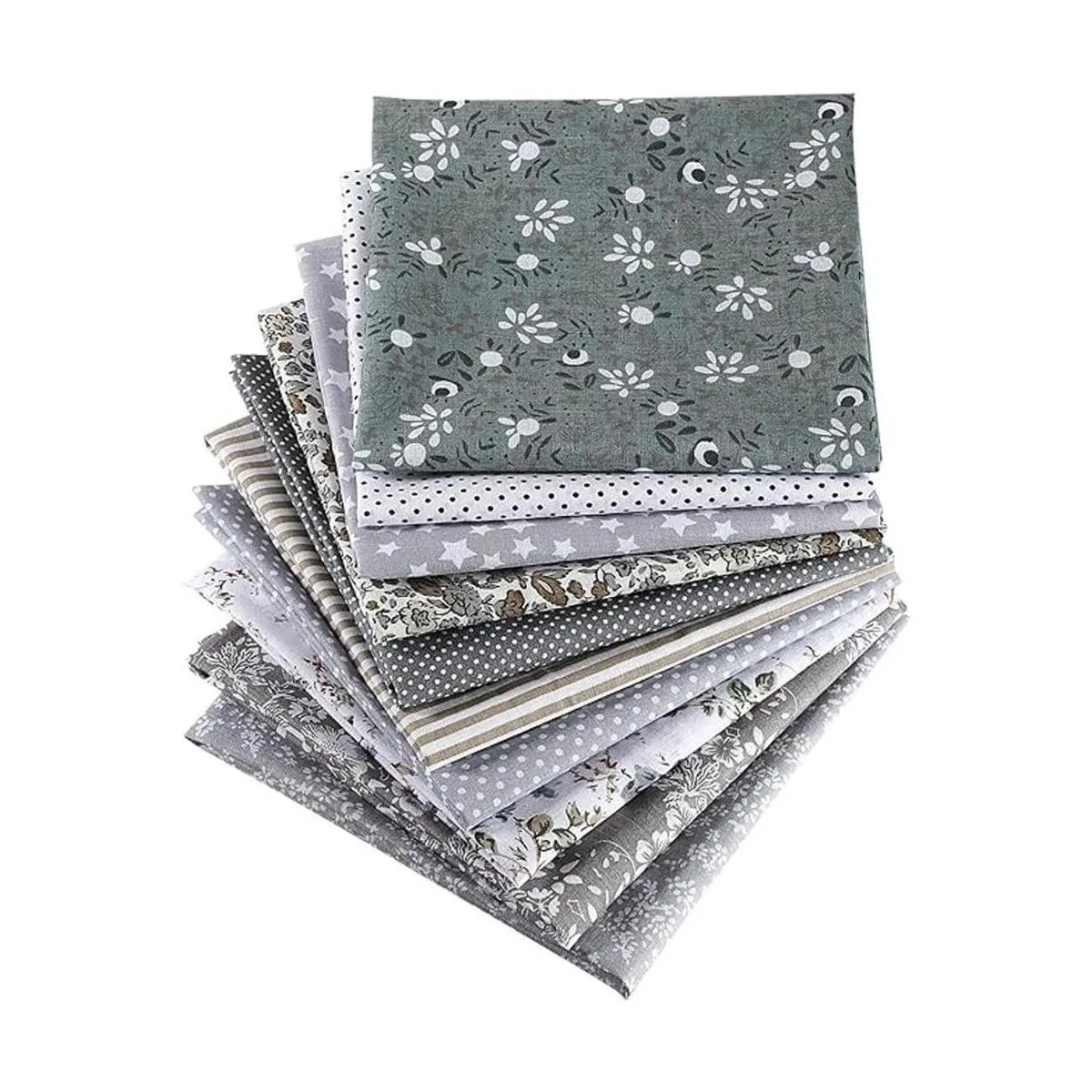 10 piezas de 20 x 20 pulgadas cuadrados de tela floral de retazos de tela cuadrada gris para costura de retazos de tela floral con patrón de rayas para manualidades, álbumes de recortes, proyectos de costura a mano