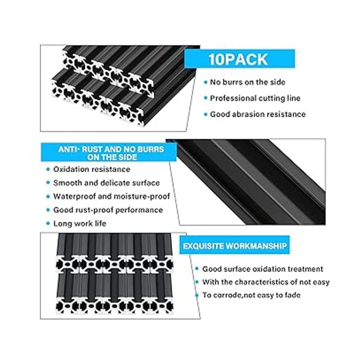 10 piezas de 39.370 in 2020 extrusión de aluminio estándar europeo anodizado perfiles de aluminio industriales para piezas de impresora 3D y banco de trabajo CNC DIY CNC negro, estilo T