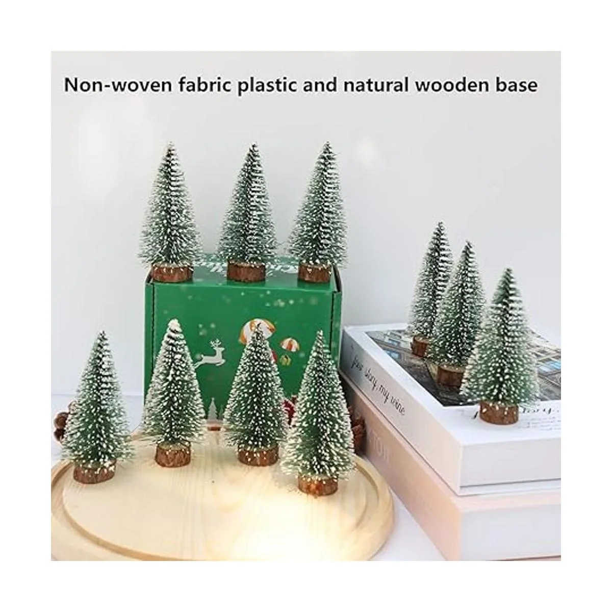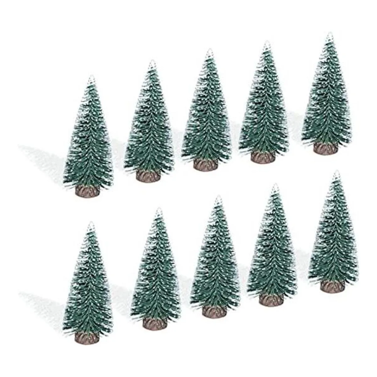 10 piezas de 4 pulgadas de botella de árbol de Navidad de árboles de Navidad, aldea, árboles de Navidad, mini árboles de Navidad de plástico con base de madera para decoración de Navidad, árbol de Navidad en miniatura