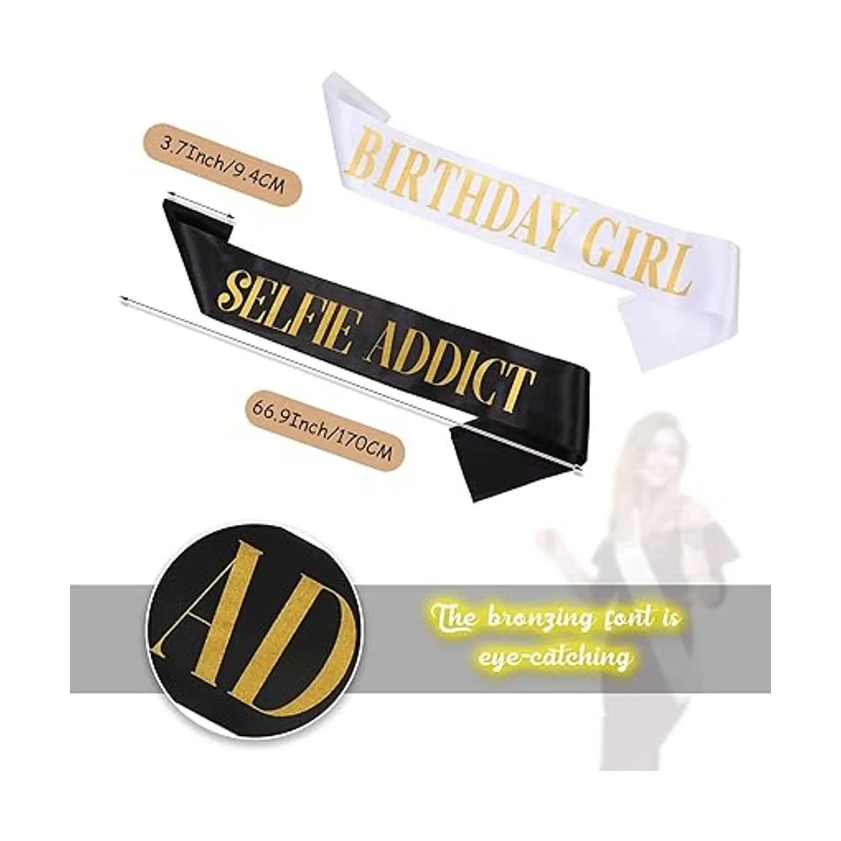Material suave: estas bandas de cumpleaños en blanco y negro para mujer están hechas principalmente de telas; tienen buena textura, se sienten sedosas, son fáciles de limpiar, reutilizables y ligeras, y no te sentirás cansado incluso si te diviertes en la fiesta durante mucho tiempo