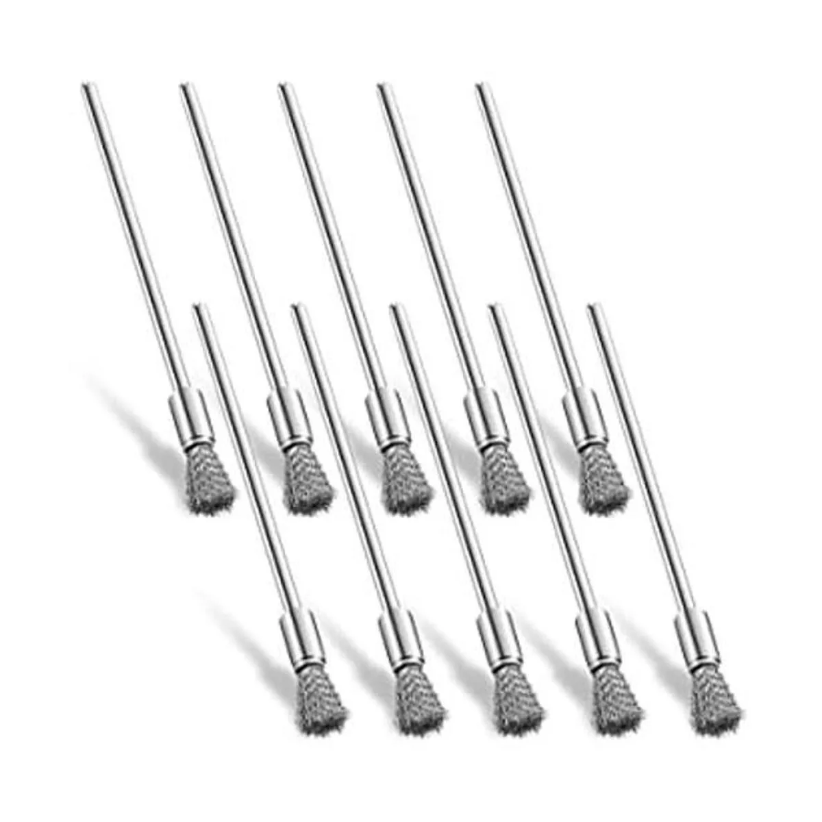 10 piezas de cepillo de alambre extendido de acero inoxidable cepillo de alambre de acero inoxidable de 0.118 in, mandril de eliminación de pintura óxido, accesorios de herramientas rotativas de pulido, cepillo de extremo de 0.236 in