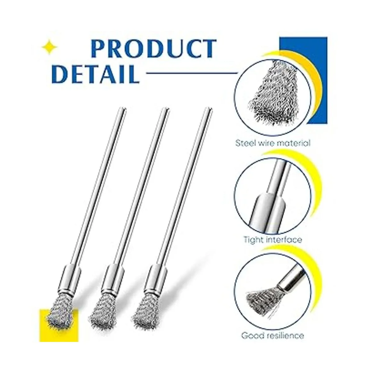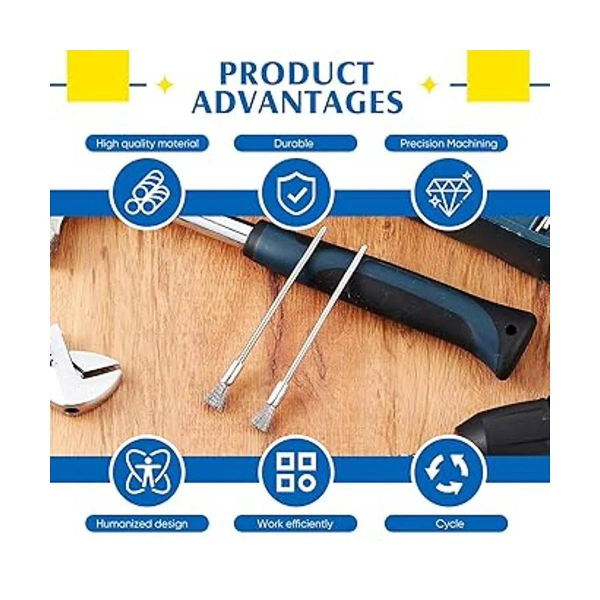 Material de calidad y resistente: el bolígrafo de cepillo de limpieza de acero está hecho de material de acero inoxidable de calidad, que es resistente y seguro de usar, no se deshilacha ni rompe fácilmente; el cepillo de alambre es delgado y fino, lo que puede eliminar perfectamente las manchas de piezas pequeñas que no se pueden tocar con los dedos