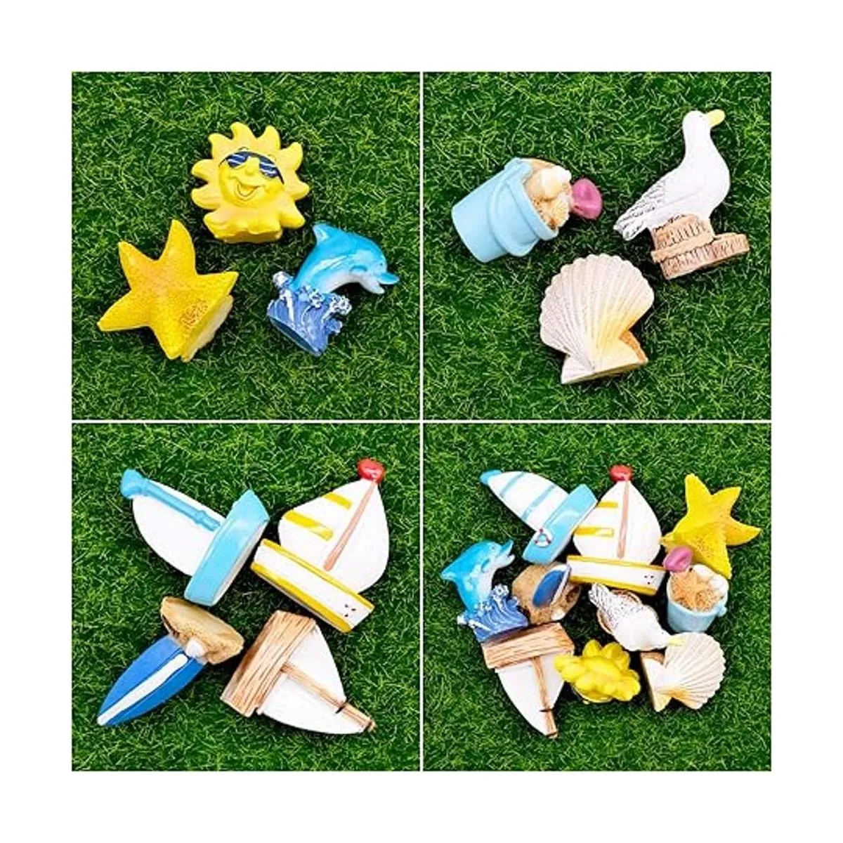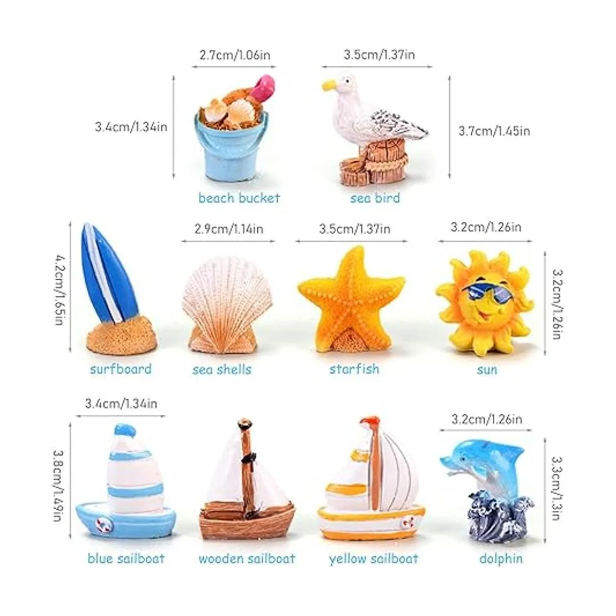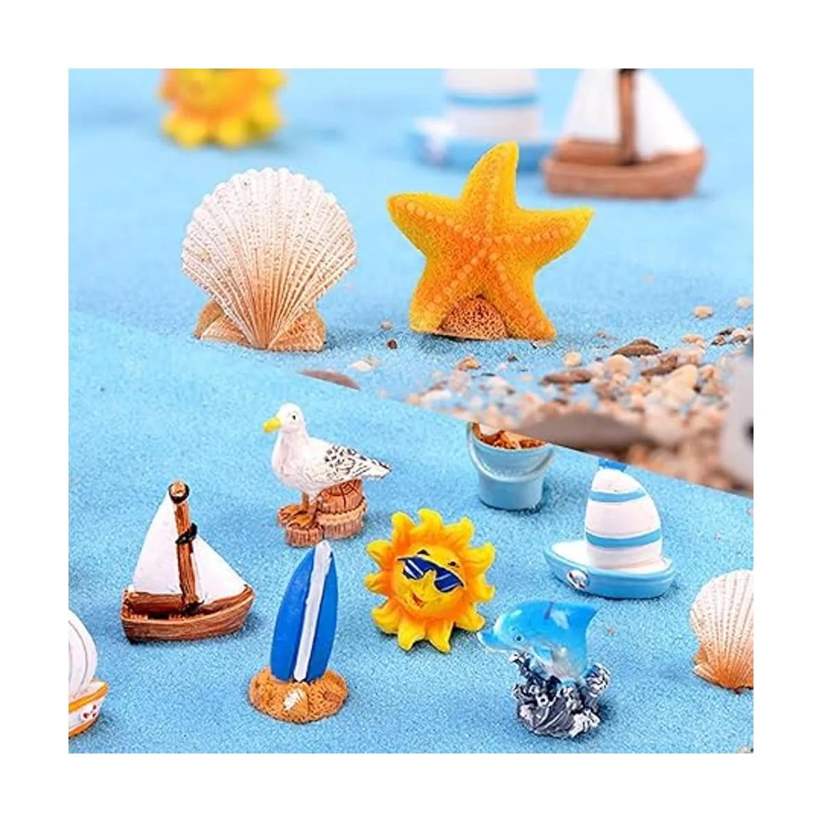10 piezas de figuras de jardín de hadas, accesorios en miniatura, concha de mar, delfín, estrella de mar, velero, playa, cubo, decoración, mini escena marina, kit de decoración de bricolaje