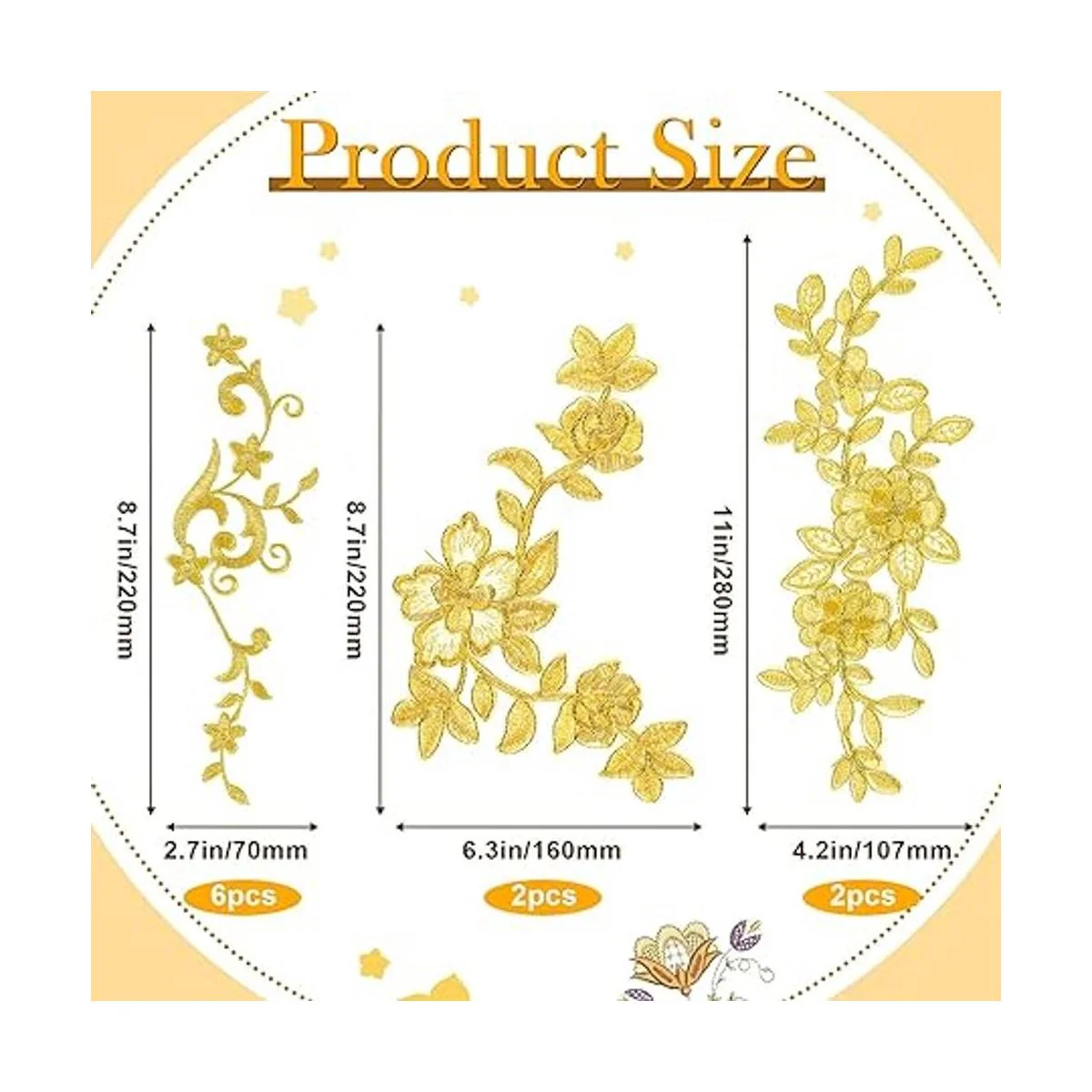 10 piezas de parches bordados de flores doradas, parches bordados para manualidades, boda, graduación, jeans, ropa