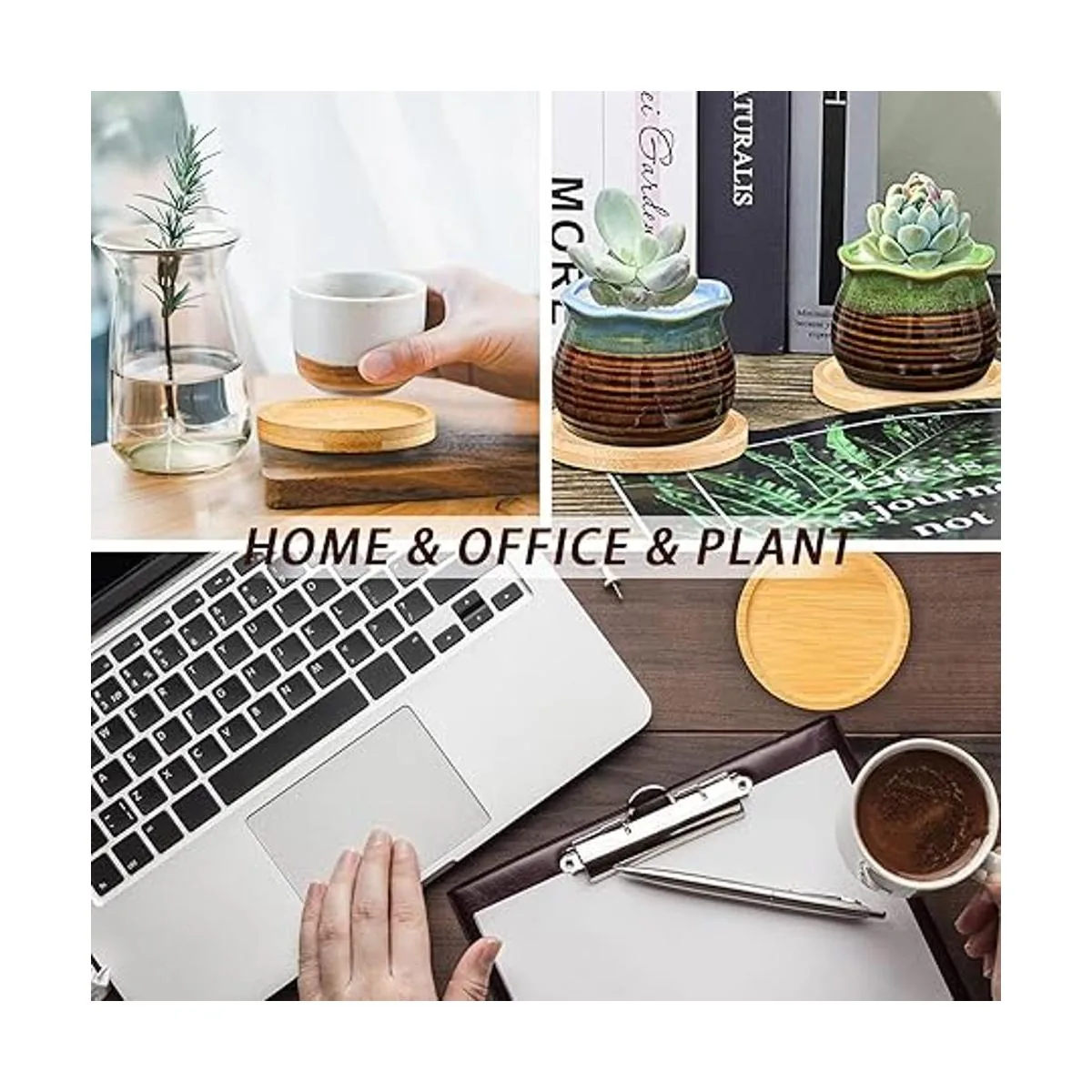 Amplias cantidades para usar y compartir: recibirás 10 mini platillos para plantas, a saber, posavasos de bambú, amplias cantidades para satisfacer fácilmente tus necesidades diarias de decoración y requisitos de bricolaje; el aspecto elegante y el color natural combinarán con cualquier mesa en casas, cocinas, oficinas, cafeterías y bares