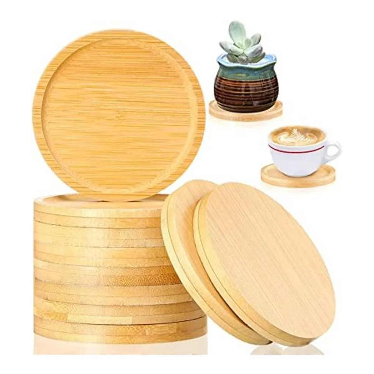 10 platillos redondos de bambú de 3.74 pulgadas, bandeja de bambú para plantas pequeñas