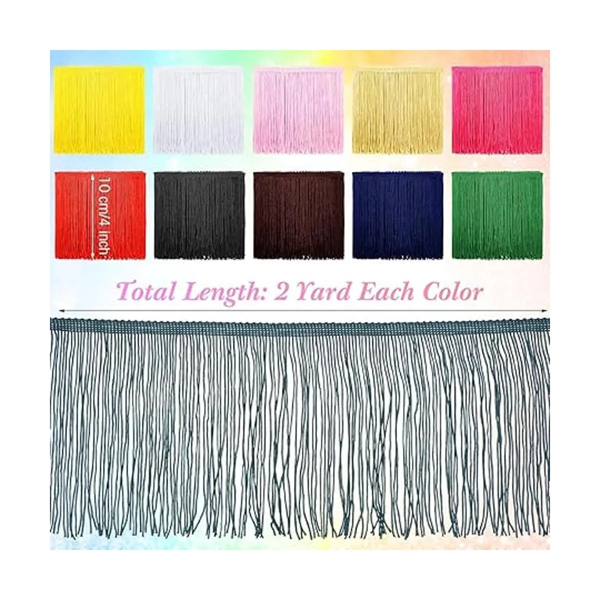 10 rollos de 20 yardas, 4 pulgadas, con flecos, borlas, adornos de coser, varios colores, cinta de encaje de poliéster para manualidades, accesorios para el hogar, decoración de ropa, 10 colores