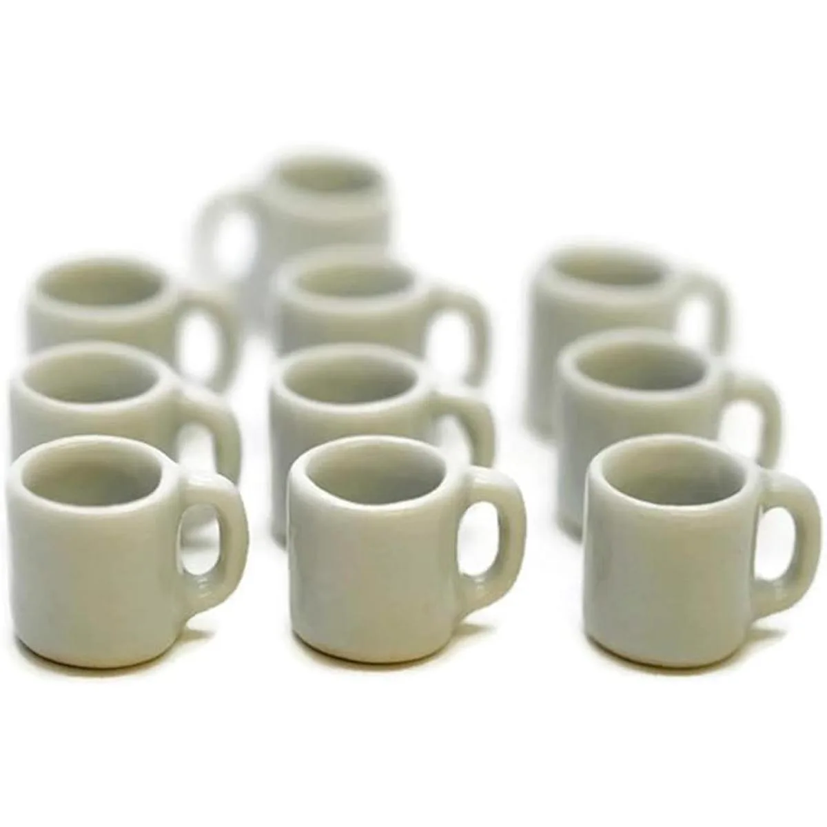 10 tazas de café pequeñas de cerámica blanca, taza de té, casa de muñecas, réplica de porcelana decorativa para manualidades, pintura y decoración de cocina coleccionable
