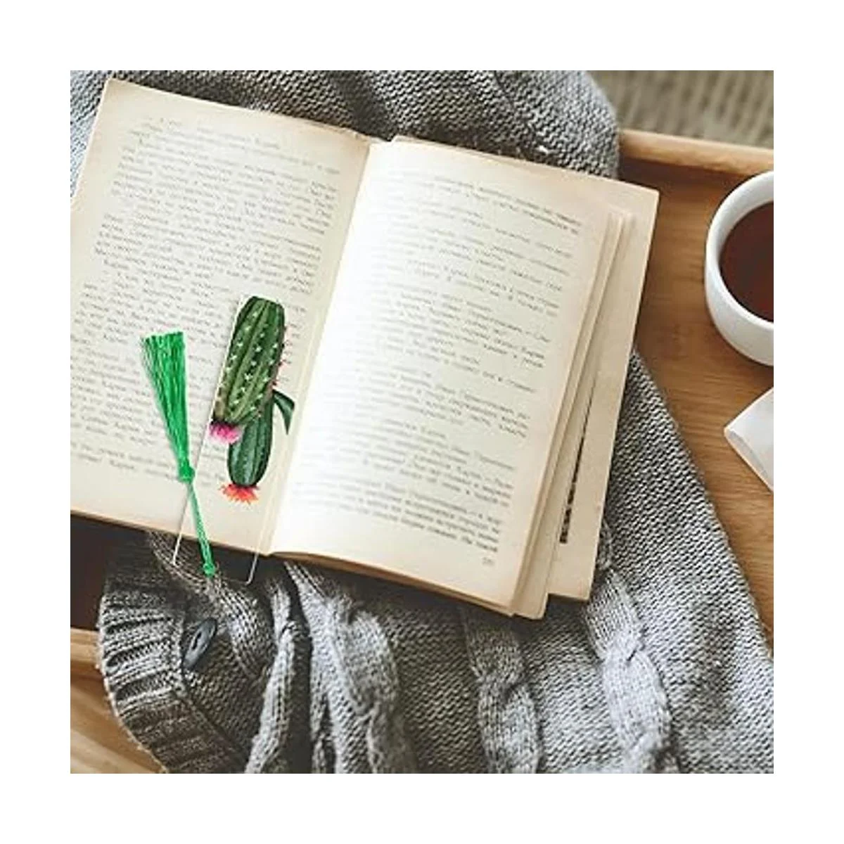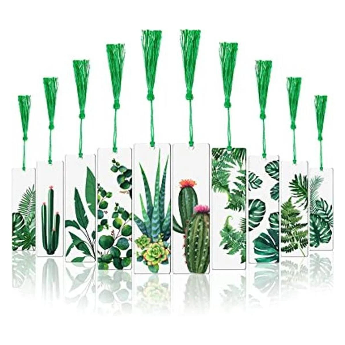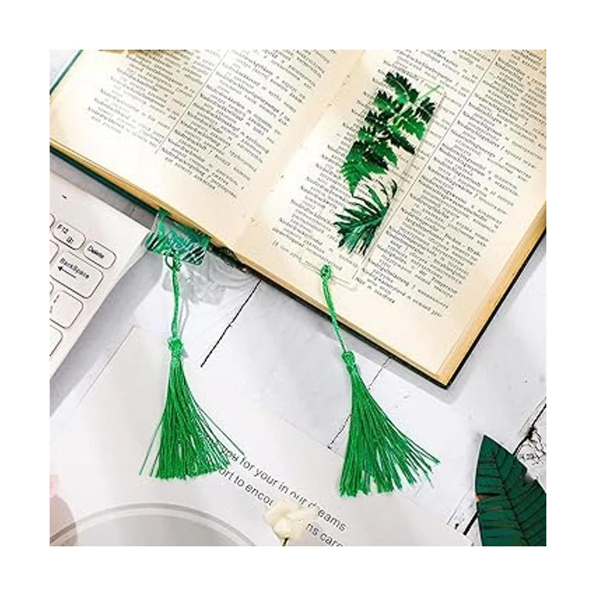 10 unidades de marcadores de borla de acrílico de resina con 10 borlas verdes de lectura de plantas marcador transparente para estudiantes de lectura de libros amantes de regalos