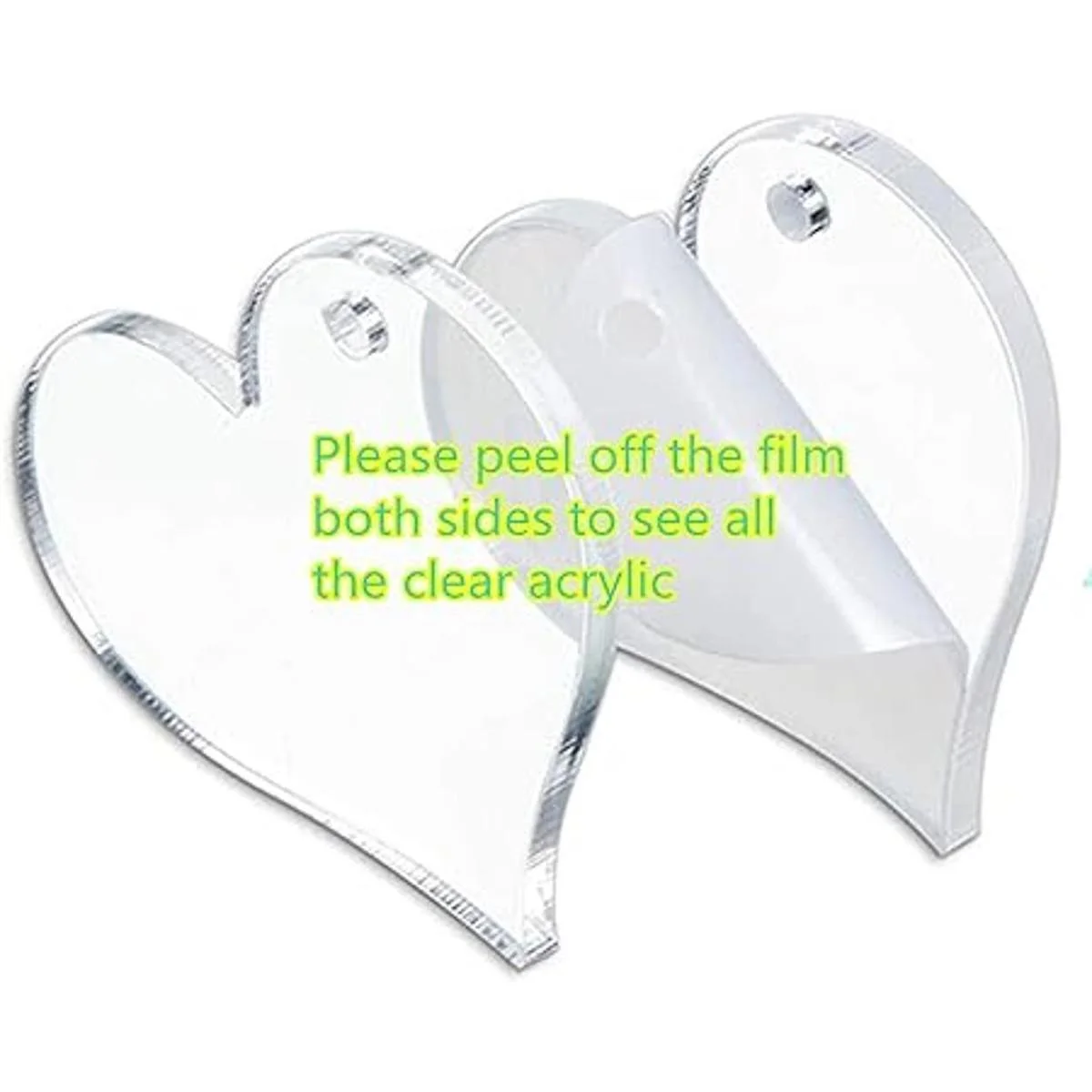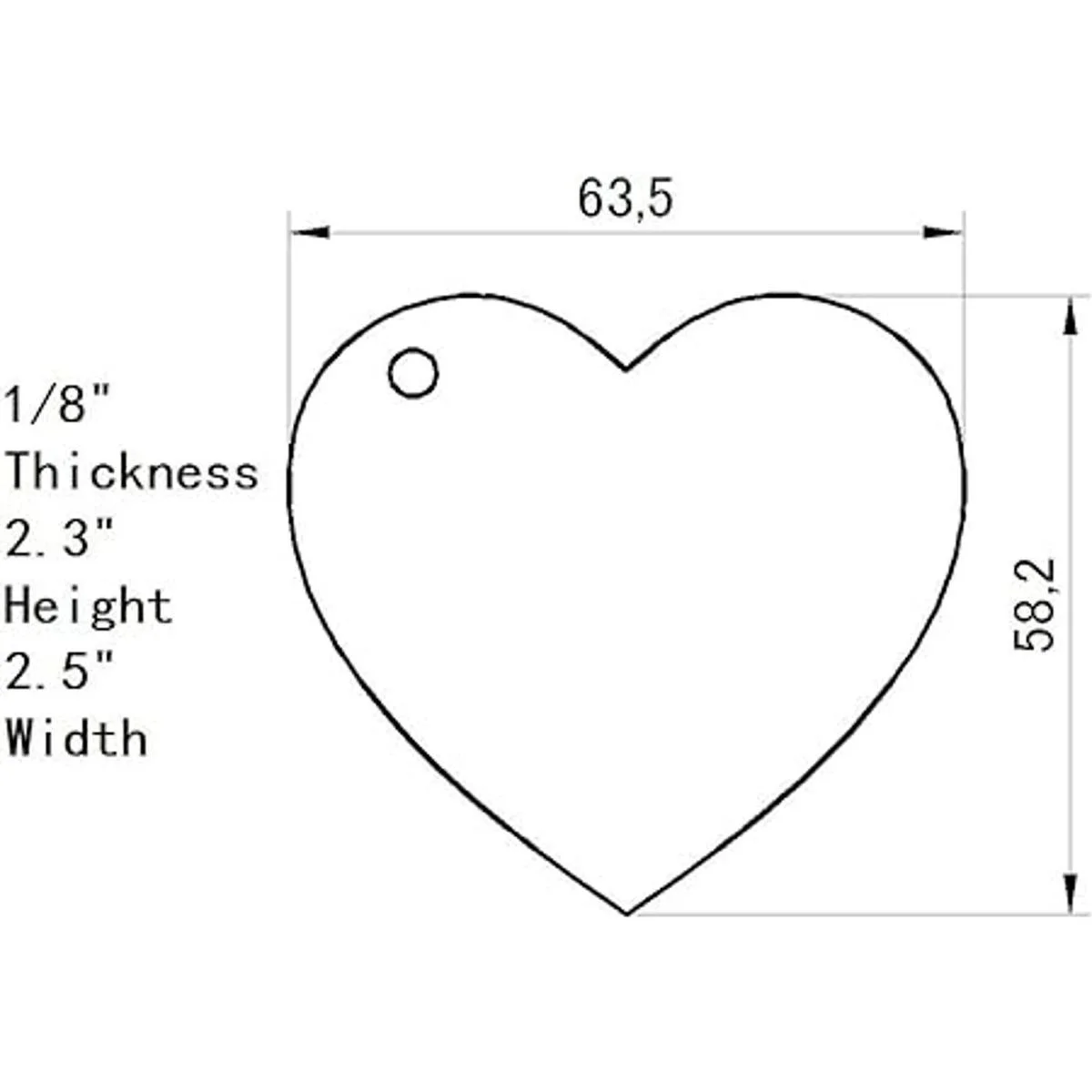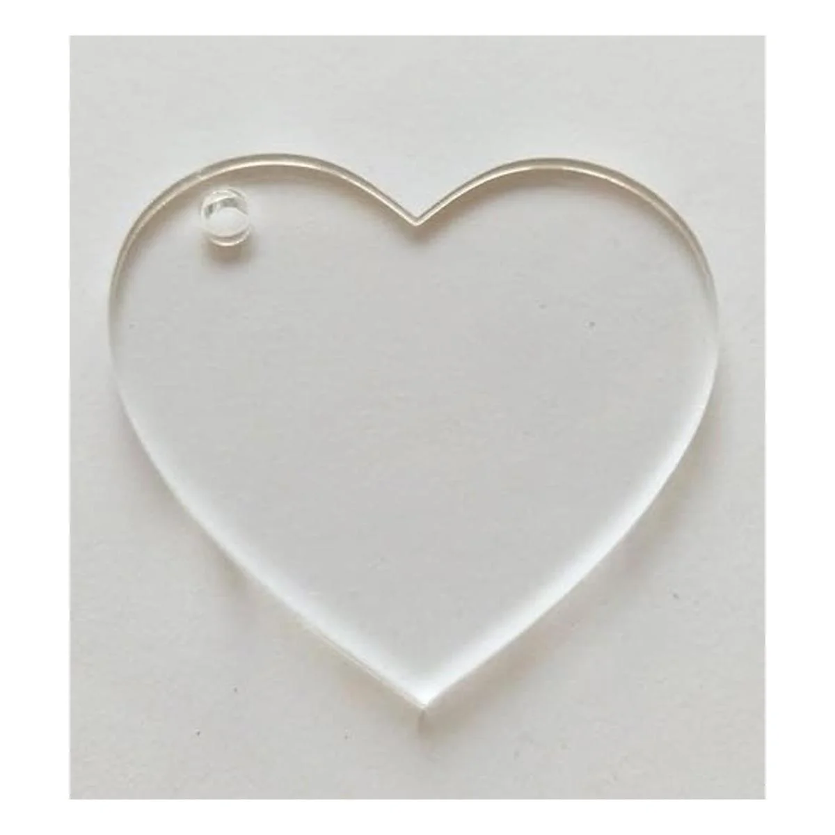 10 unidades en blanco transparente acrílico forma de corazón colgante material, plexiglás corte láser corazón blanco llavero collar accesorio DIY 18 pulgadas de grosor 2.5 pulgadas