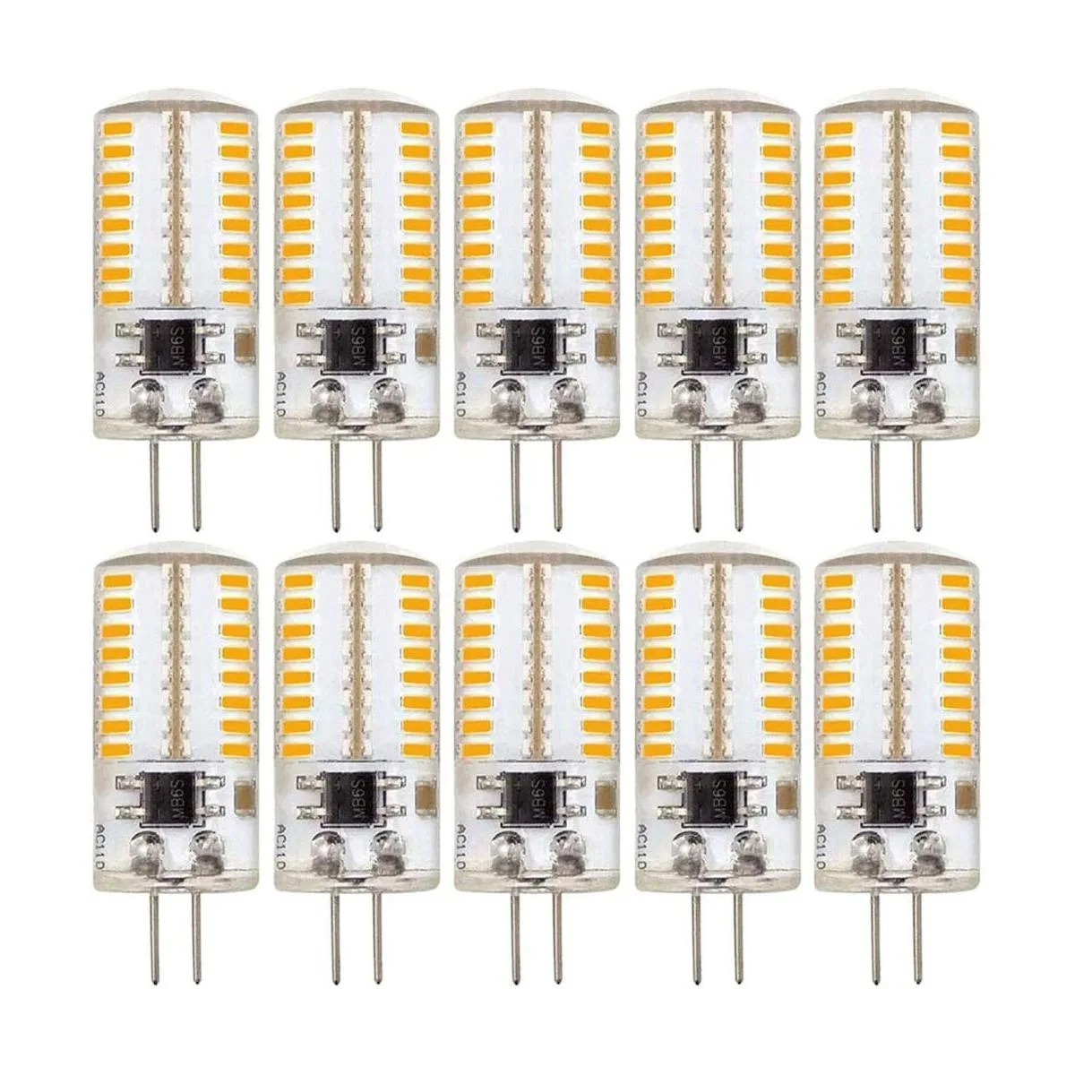 10 unidades, G4 Bombilla LED regulable 120 V 110 V 130 V AC 2,5 W 300 lúmenes, 64pcs 3014 SMD Lámpara de luz de día Lamp Lámpara de techo con brazos Combinación transparente de silicona decoración blanco cálido 2700 K3200 K