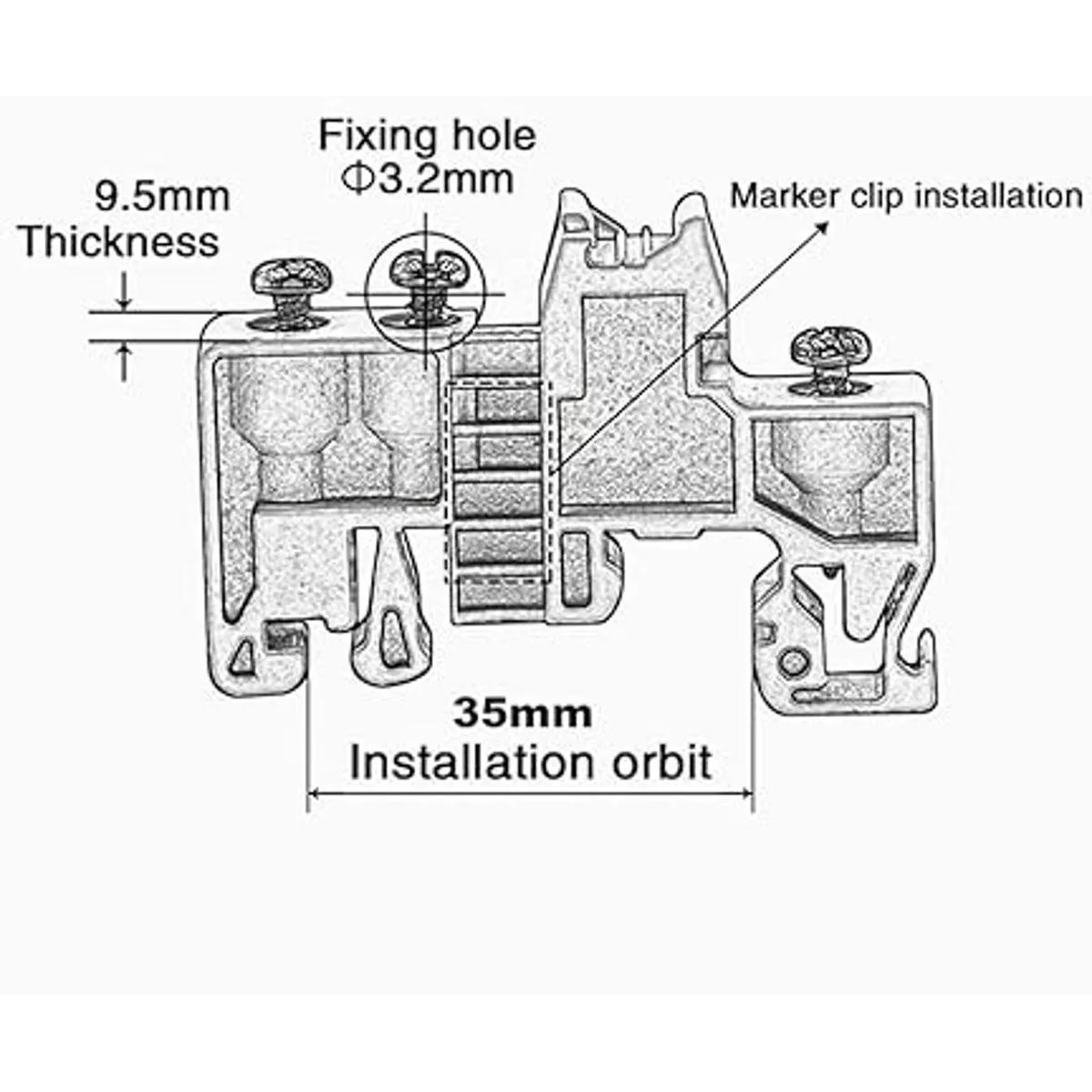 10 unids EUK DIN Rail Bloques de terminales End Stopper Bracket Fit for 1.378 in Ancho Rail Gris