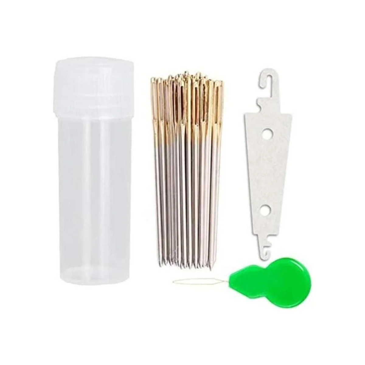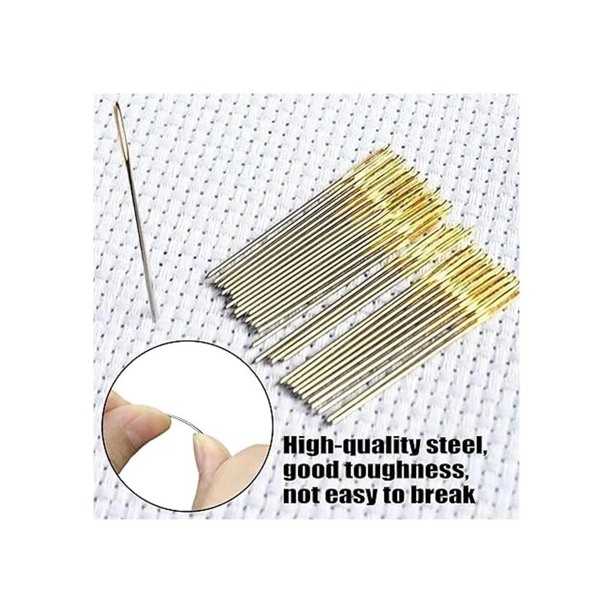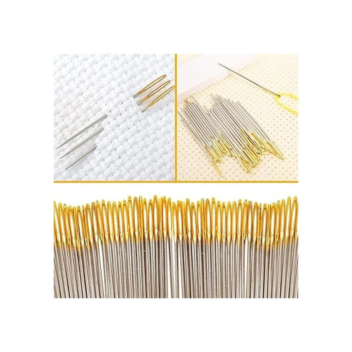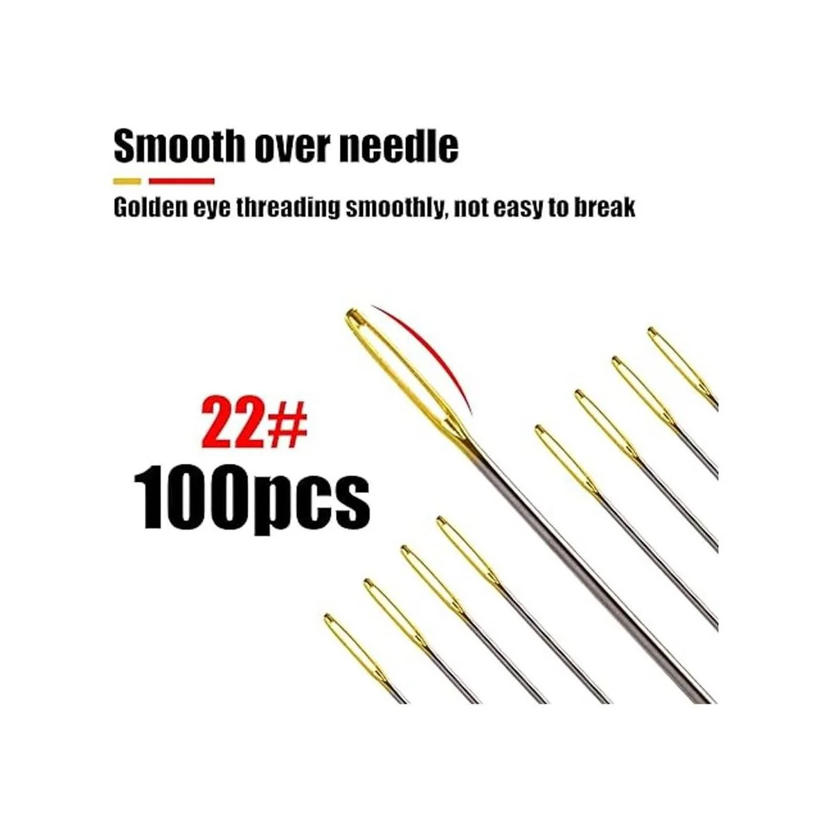 100 agujas de punto de cruz 2 agujas de enhebrador de agujas de color dorado, ojos grandes, punto de cruz, agujas de coser para manualidades, agujas de coser en caja transparente 22