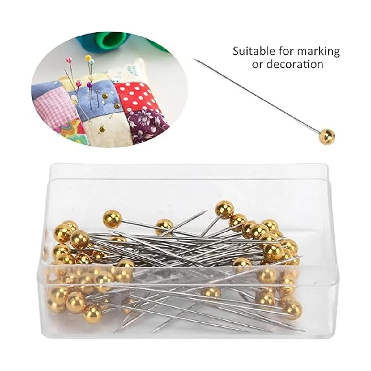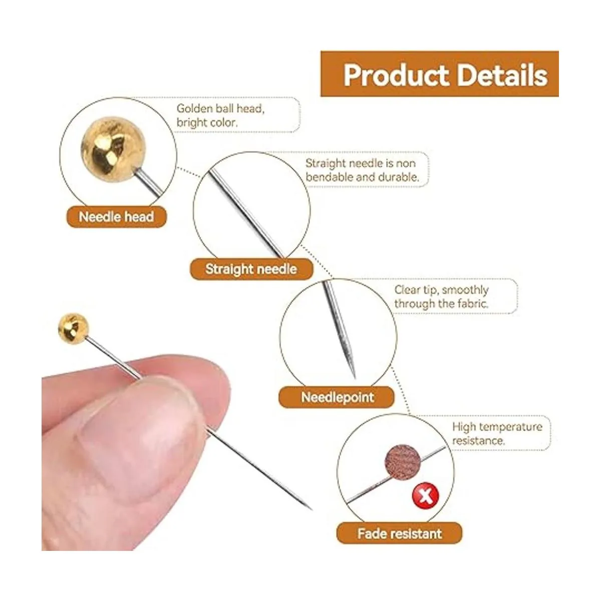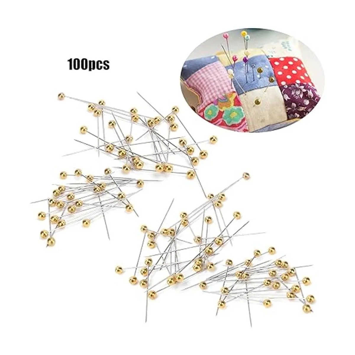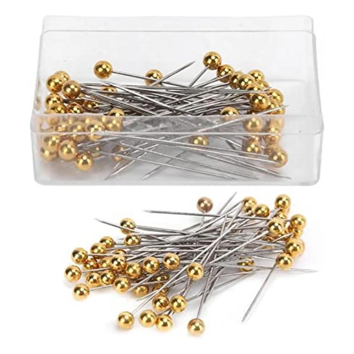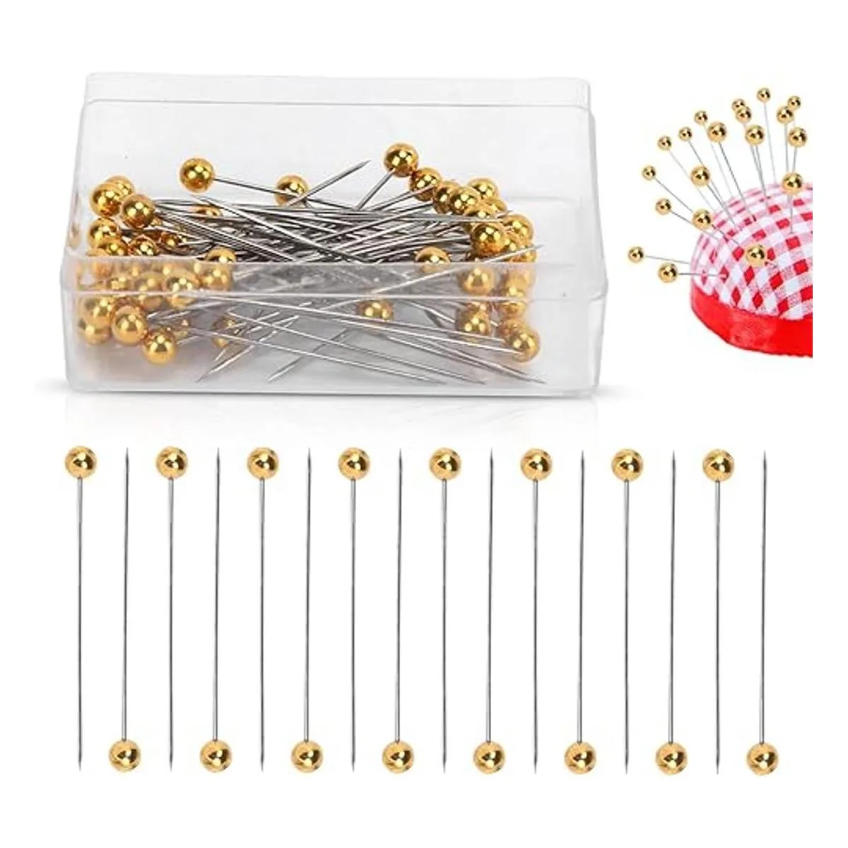 100 alfileres de coser, pasadores rectos para acolchar, cabeza de bola dorada para tela, alfileres de costura, manualidades
