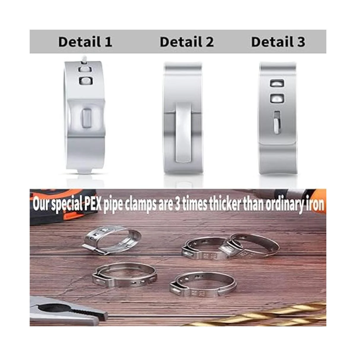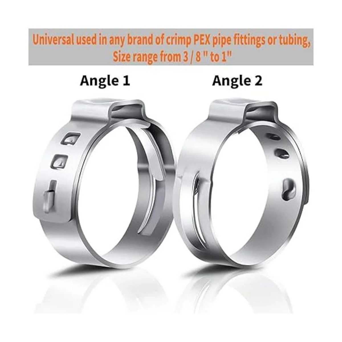100 anillos de abrazadera PEX de 34 pulgadas, abrazaderas de ajuste PEX de acero inoxidable 304, anillos de crimpado Pex para conexiones de tubería PEX plateado, 34 pulgadas 100 unidades