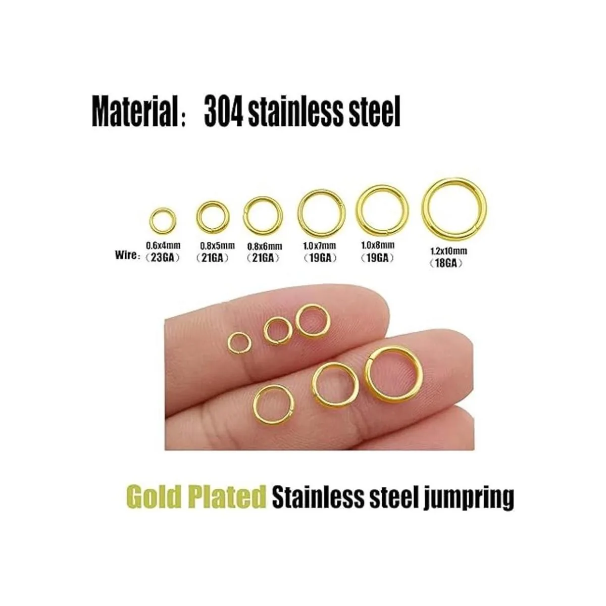 Material: anillos de acero inoxidable 304 resistentes sin cadmio. Color: acero inoxidable chapado en oro real, mantiene el color simple pero duradero, se adapta a la mayoría de joyas y manualidades