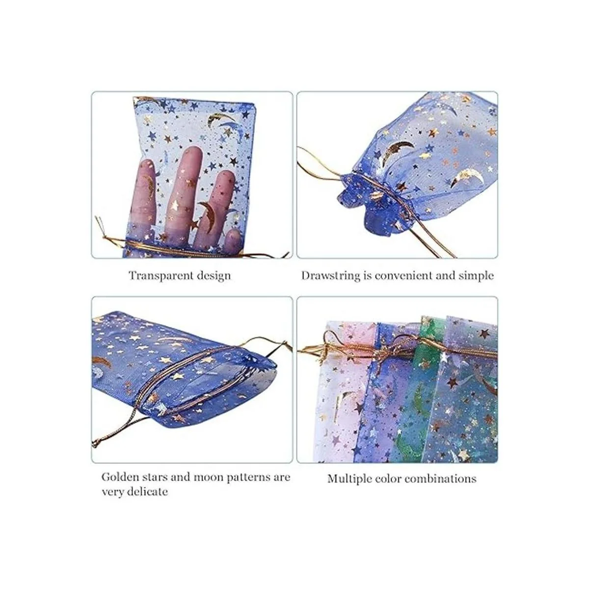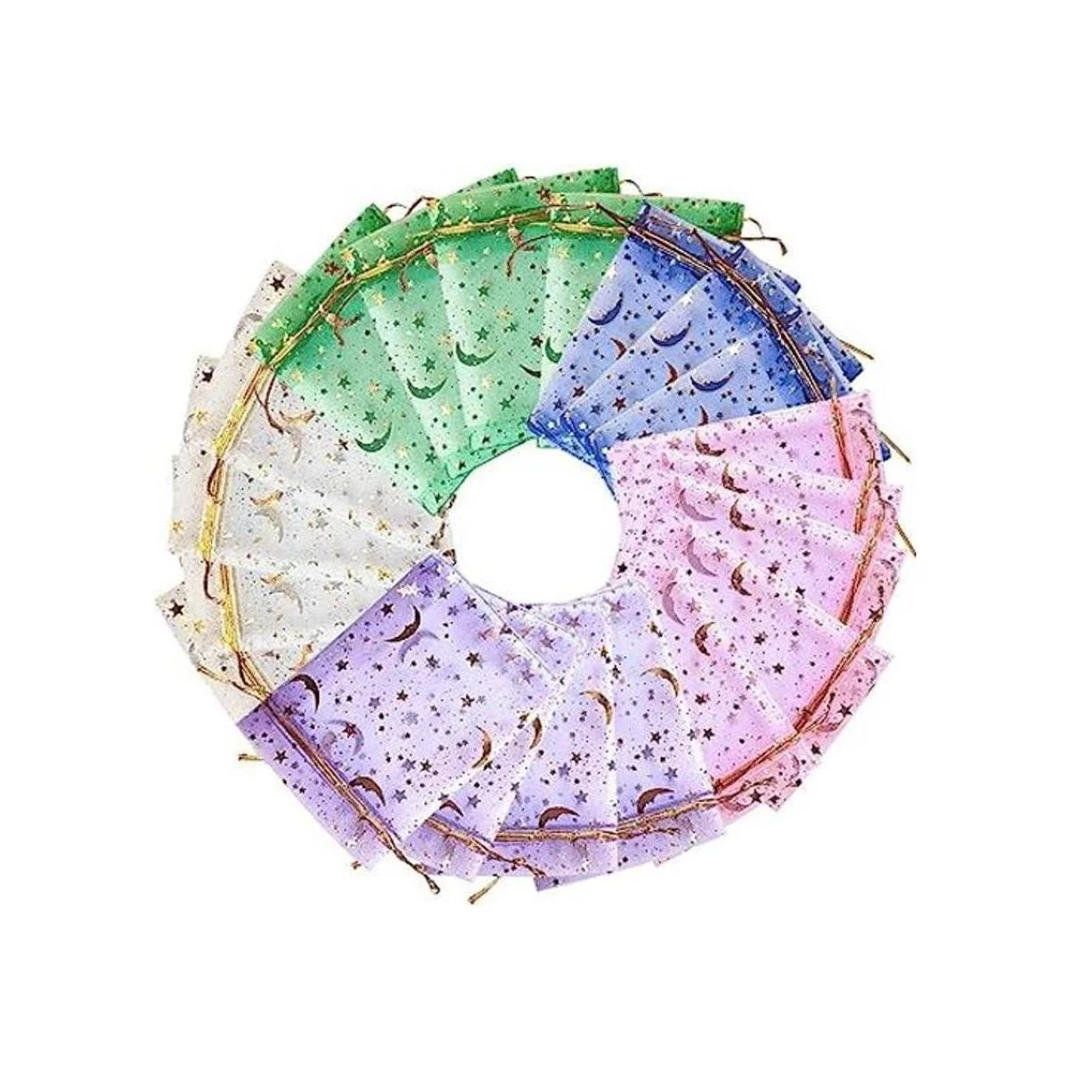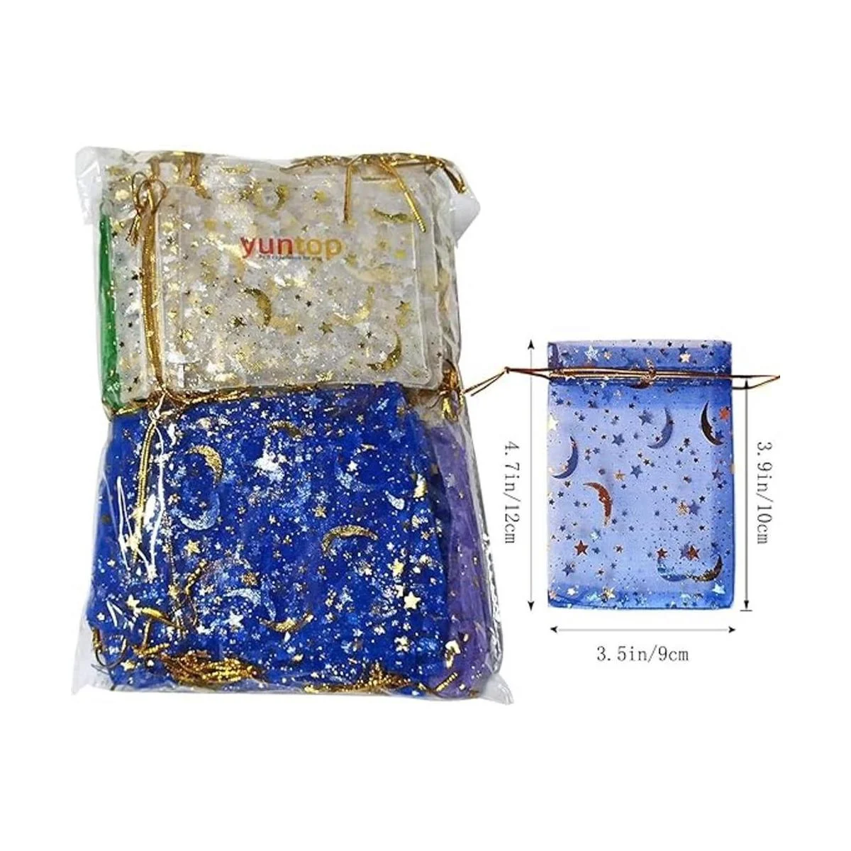 100 bolsas de organza para joyas con estrella de luna, bolsas de regalo para bodas, fiestas de San Valentín color mixto, 3.1 x 4.3 in