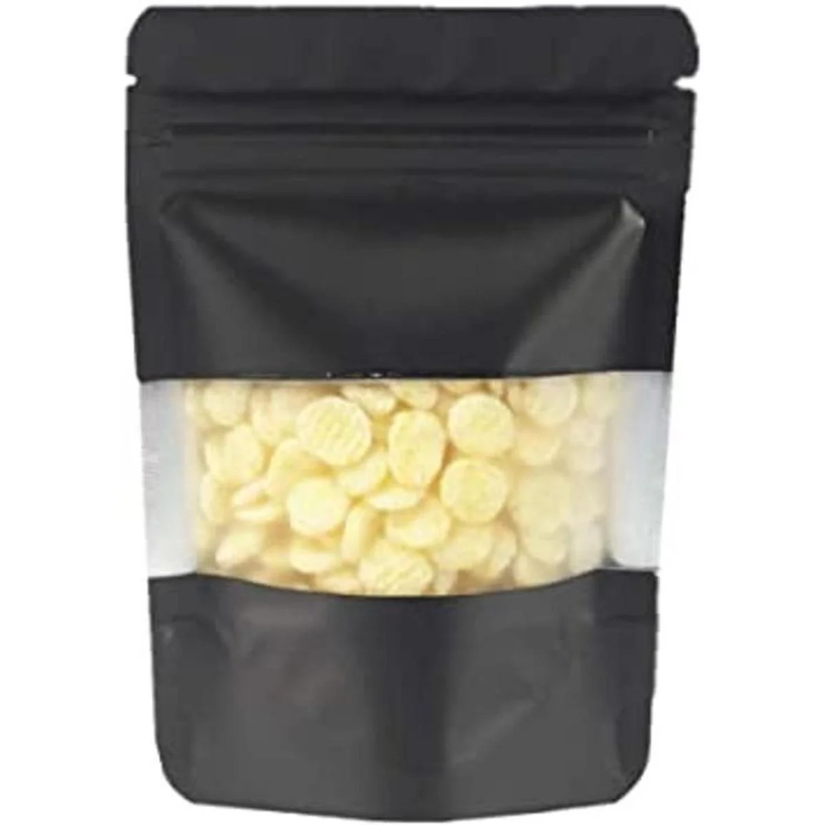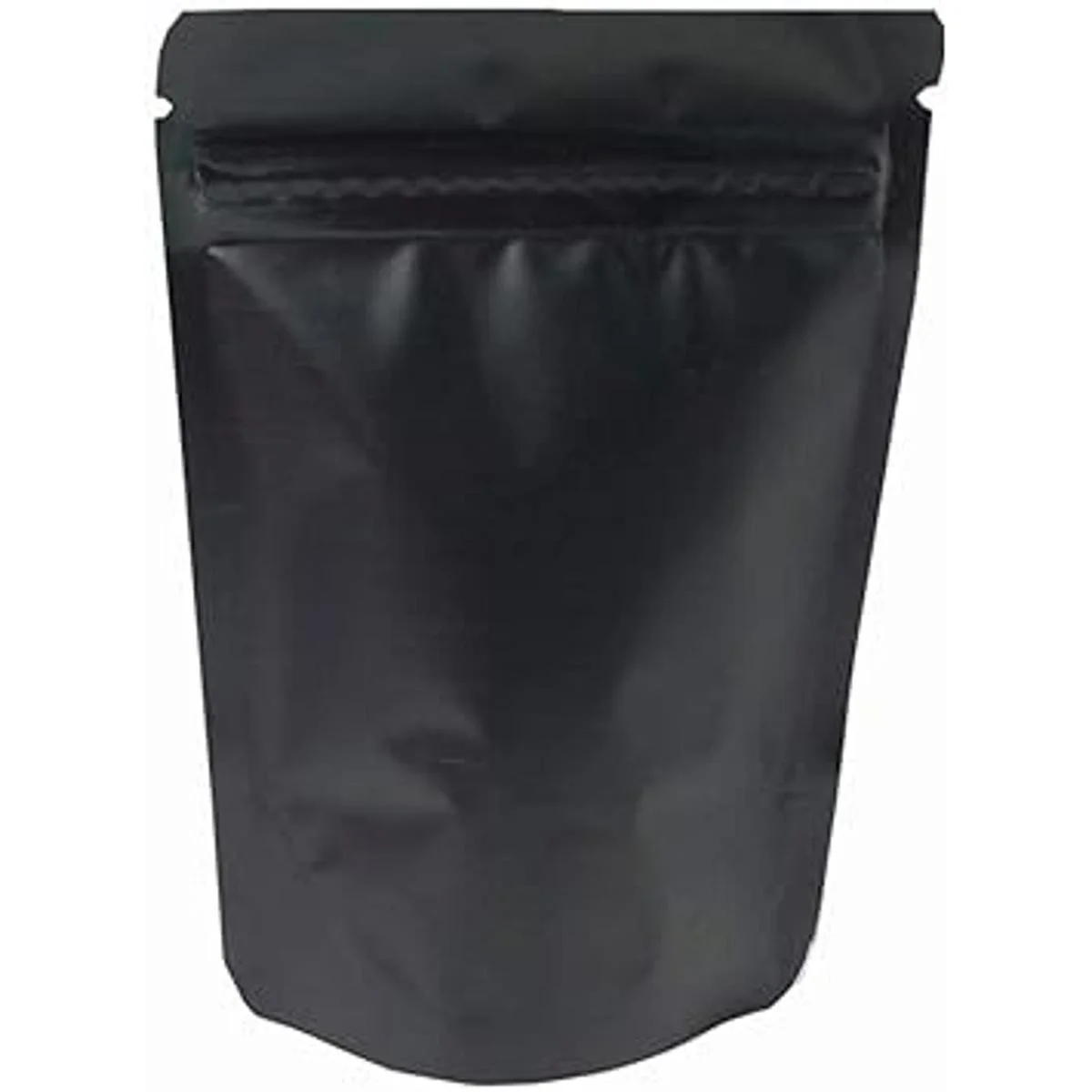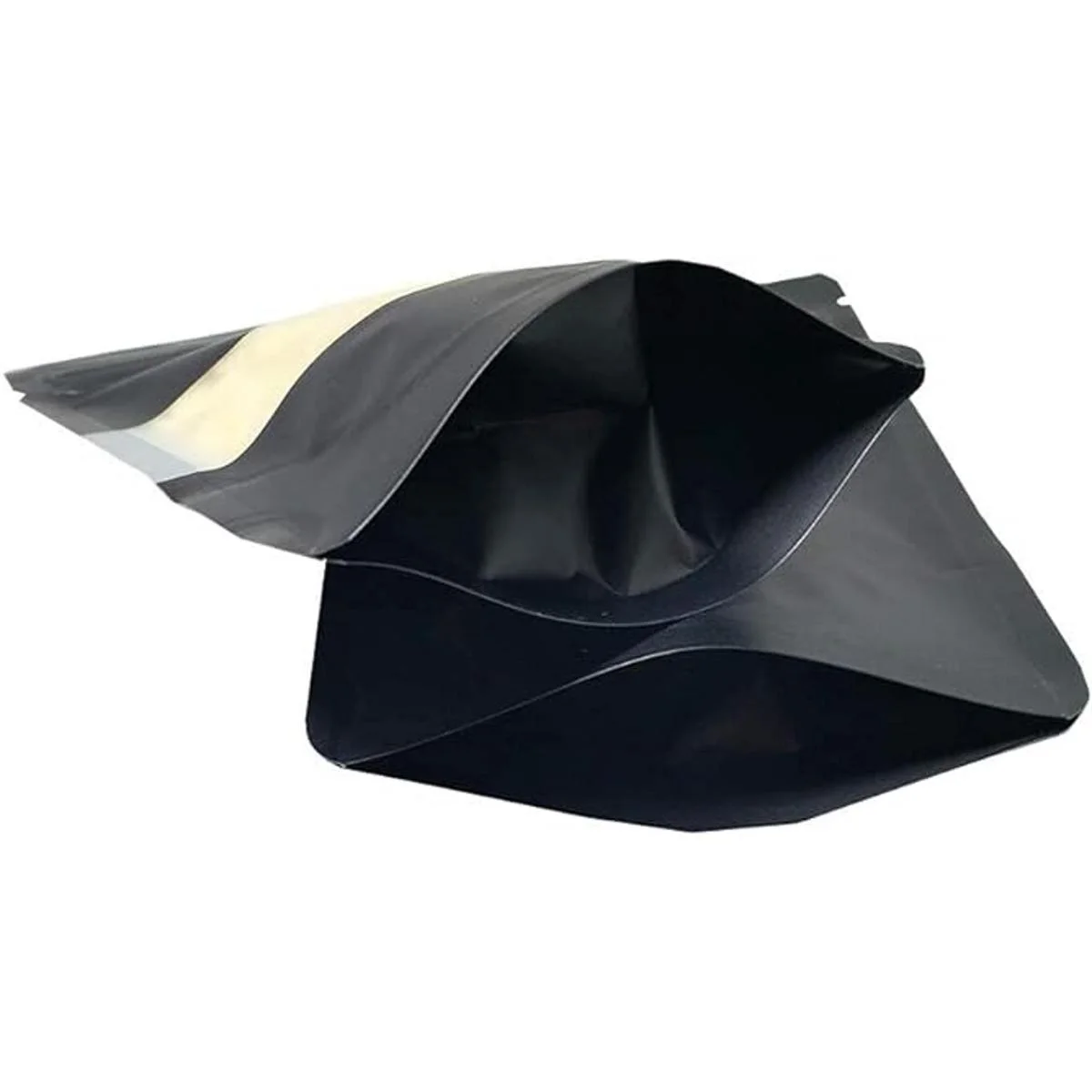100 bolsas de pie resellables de 3.5 x 5.1 pulgadas, color negro mate con sellado térmico para ventana, bolsas de papel de aluminio para almacenamiento de alimentos a granel