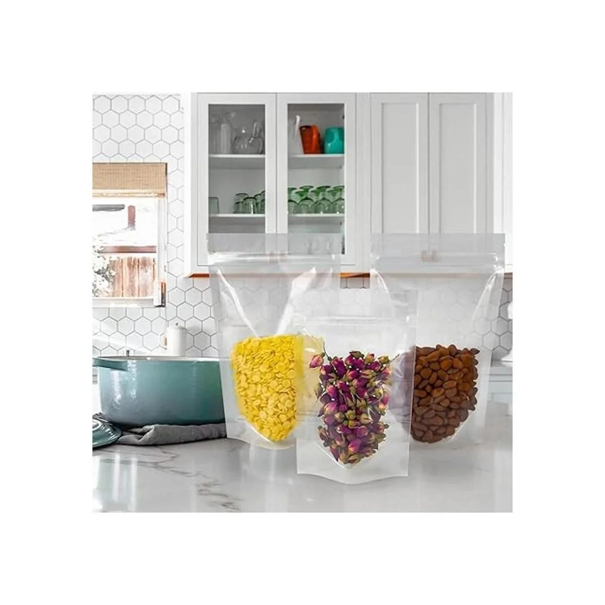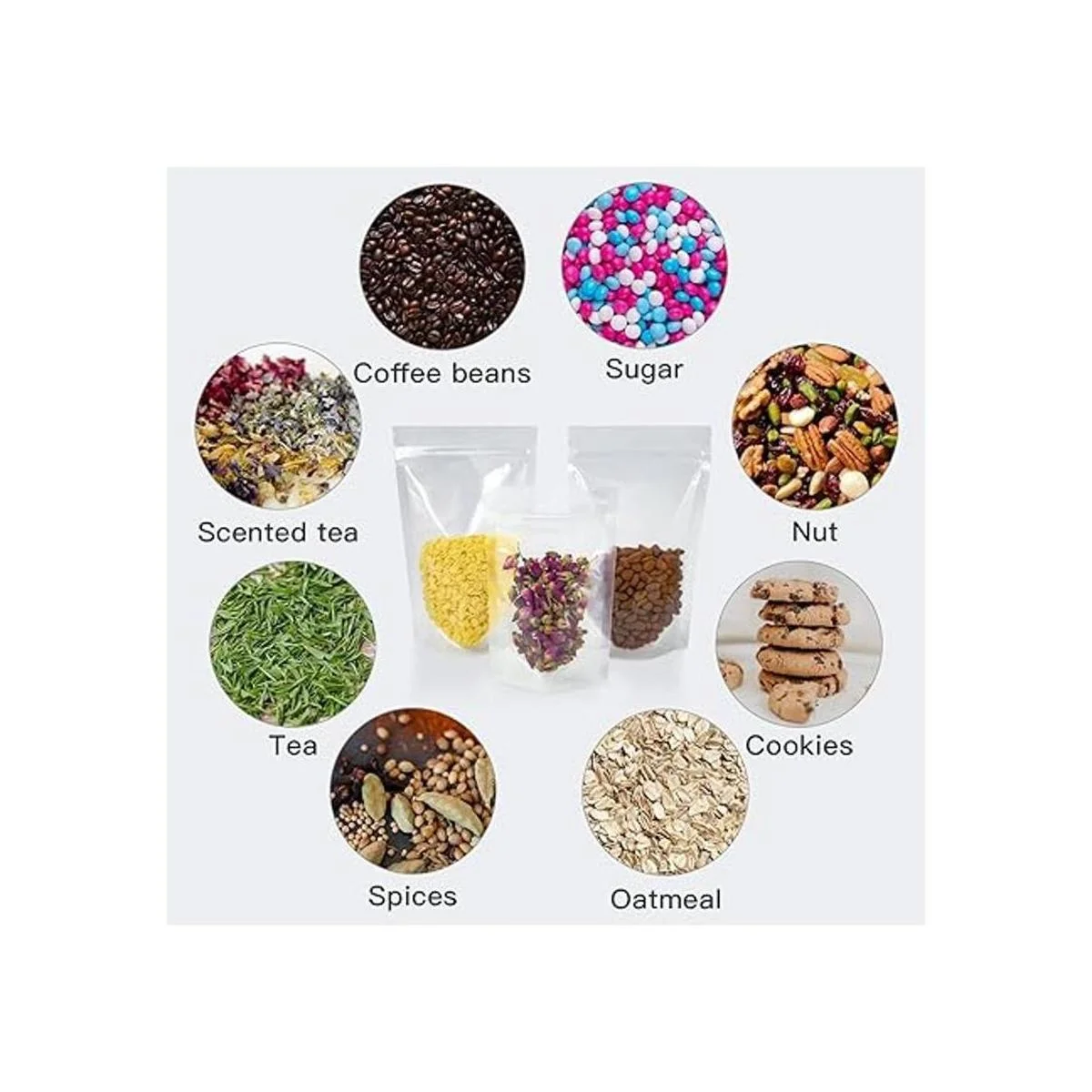 100 bolsas resellables, bolsas transparentes de 5.1 x 7.9 pulgadas, bolsas de almacenamiento de alimentos con cierre de cremallera para productos de embalaje, hierbas, aperitivos, té, especias, alimentos para mascotas y jabones