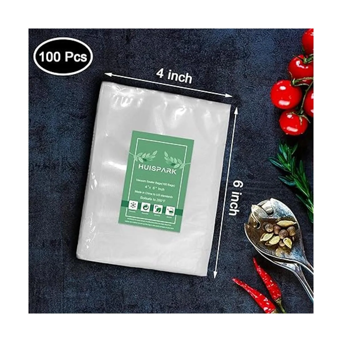 Fácil de usar 100 bolsas selladoras al vacío de 4 x 6 pulgadas con canales en relieve para aumentar la succión para una máxima frescura, mantener fresco sin quemaduras o deshidratación.