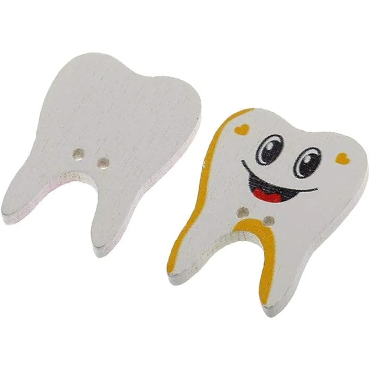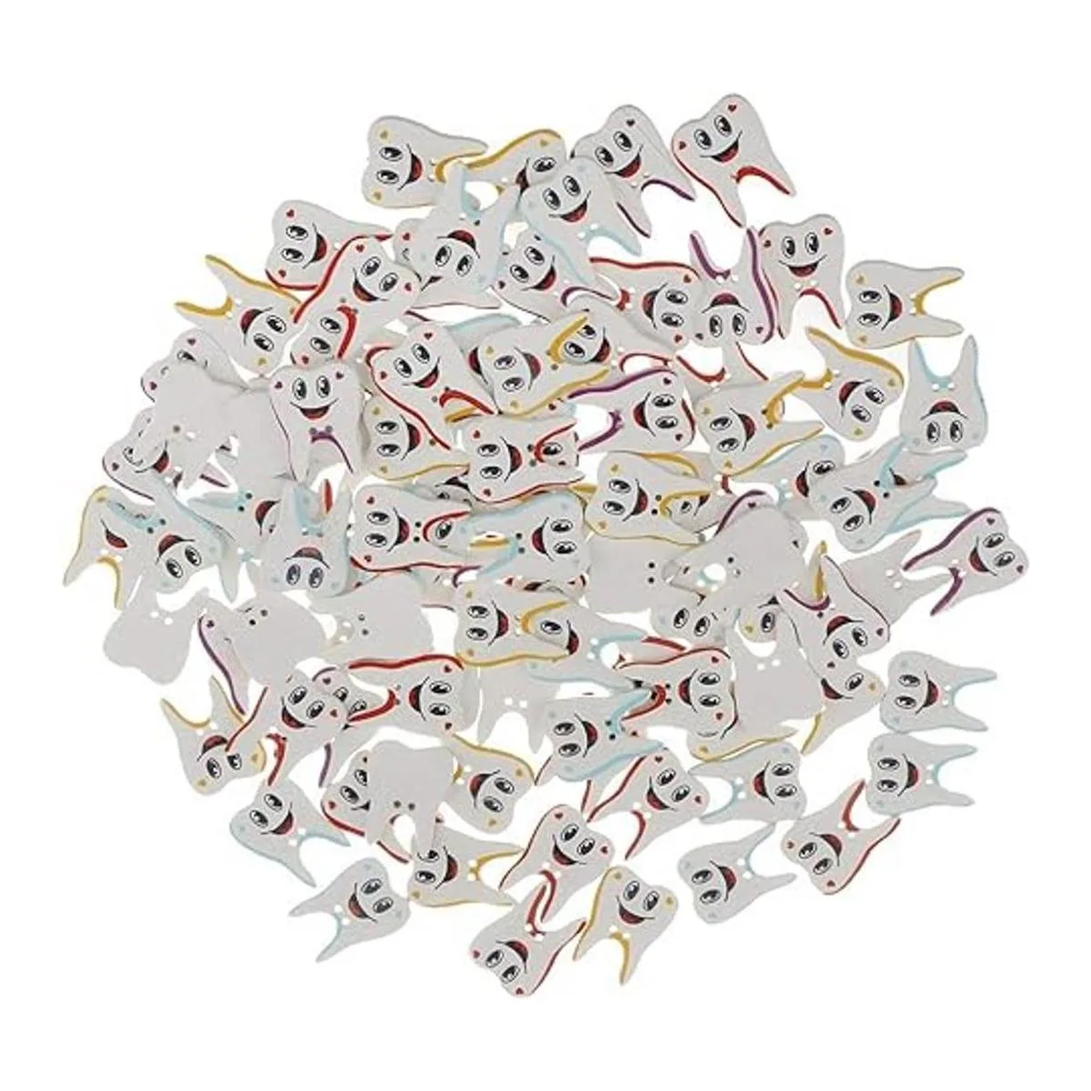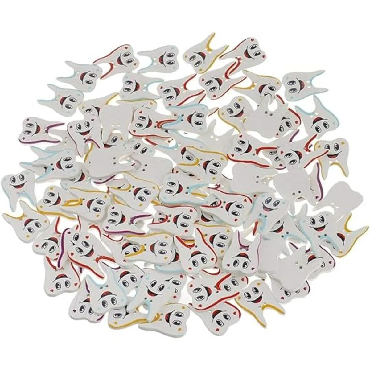 100 botones de madera con forma de diente, 2 agujeros, botones decorativos de madera para coser ropa de manualidades.