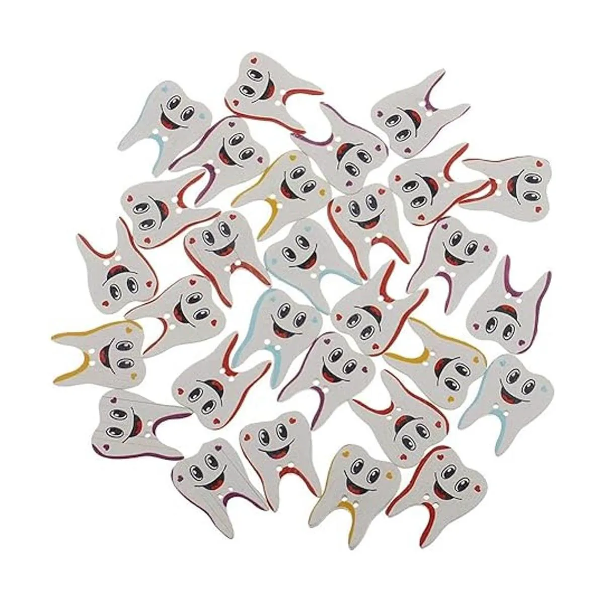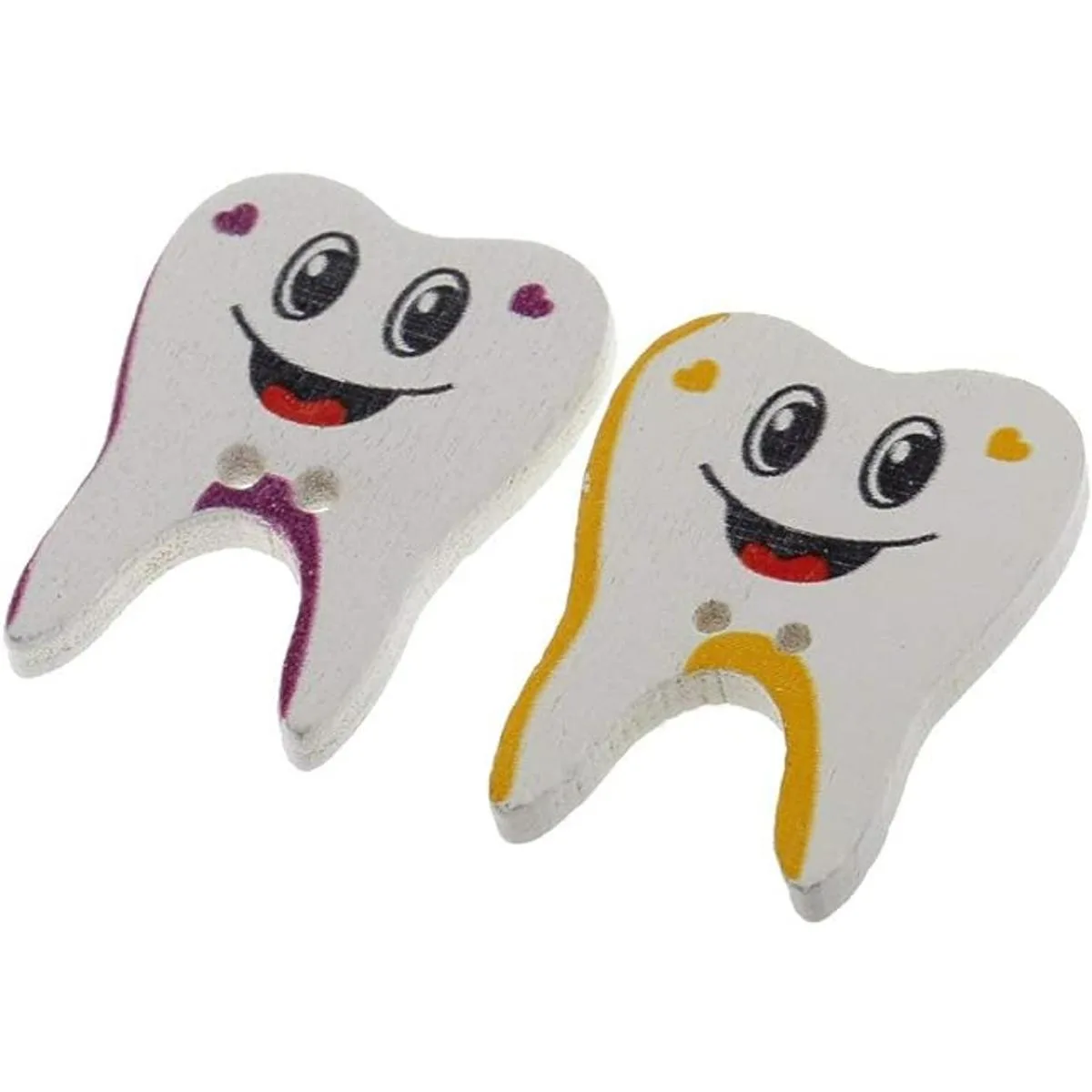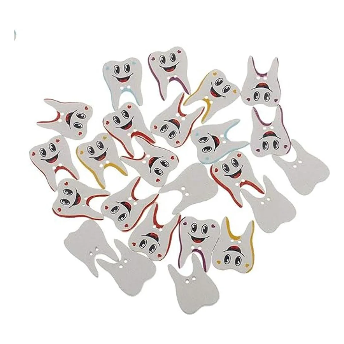 100 botones de madera con forma de diente, 2 agujeros, botones decorativos de madera para coser ropa de manualidades.