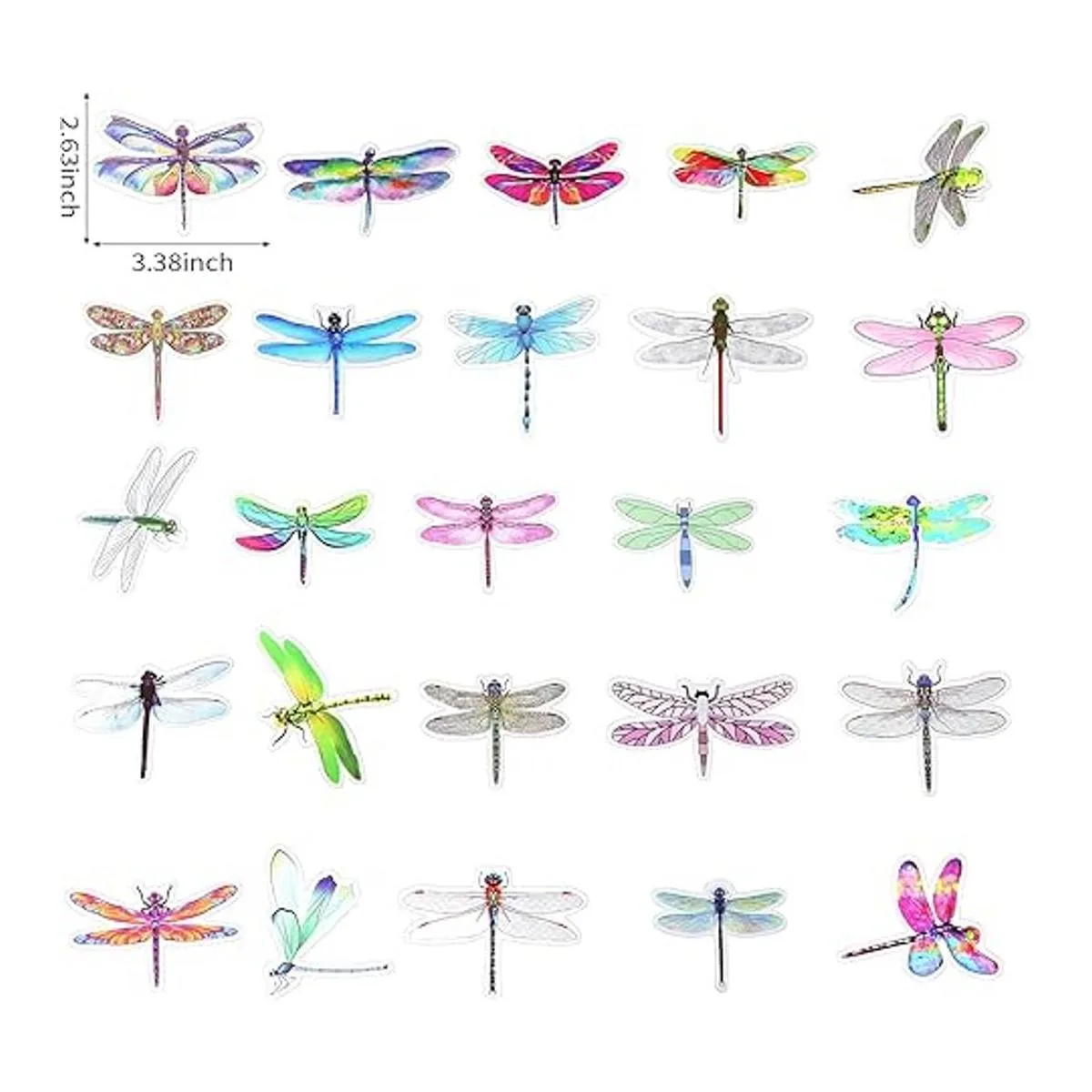Cantidad del paquete: el paquete viene con un total de 100 calcomanías de libélula de colores brillantes, incluyendo 50 diseños diferentes; cada calcomanía mide aproximadamente 2.2 x 3.5 in